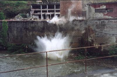Obras realizadas para el derribo de las chimeneas de la Cerrajera