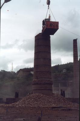 Obras realizadas para el derribo de las chimeneas de la Cerrajera
