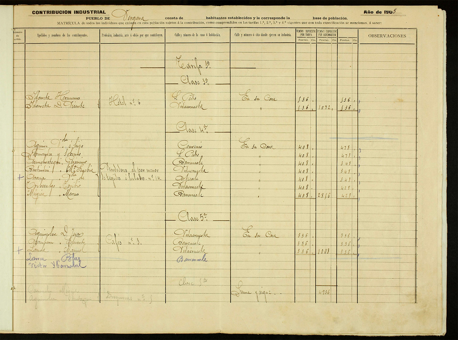 El Ayuntamiento elaboraba cada año un listado o matrícula de los contribuyentes en función de su actividad y la tarifa a la que se adscribe la misma.