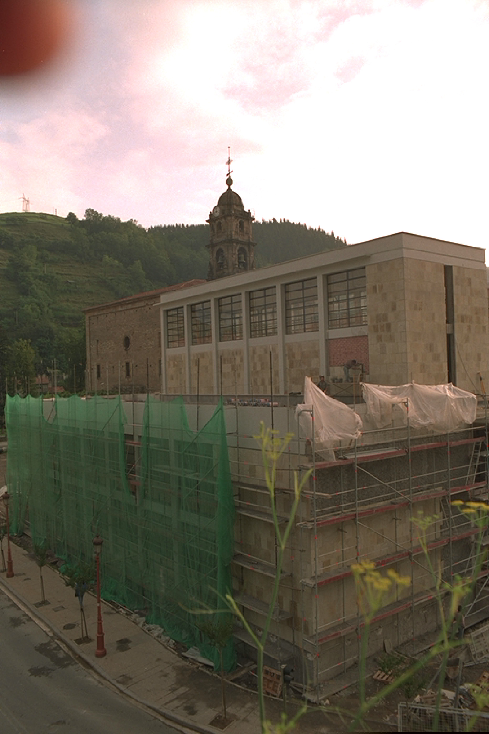 Obras del nuevo mercado desde atrás; en segundo plano la torre de la iglesia de Santa Marina |