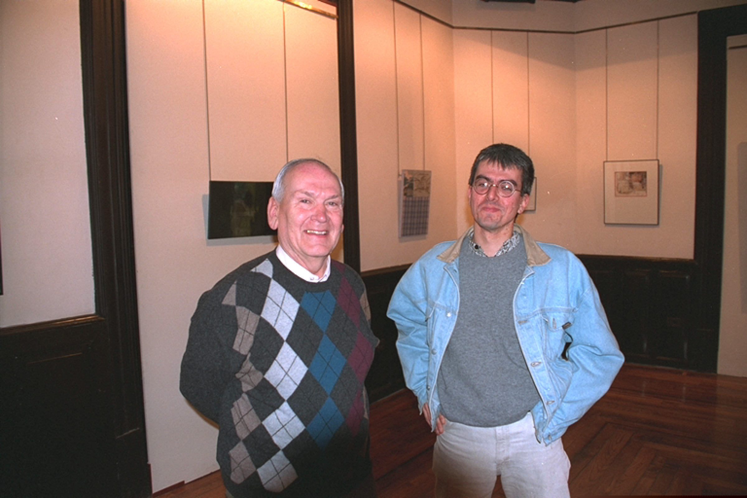 | Retrato de dos hombres en una exposición. | José Antonio y Dani hacen balance positivo de su exposición conjunta, que se pudo contemplar en la Casa de Cultura durante los meses de octubre y noviembre [argazki-oina, arg.] |