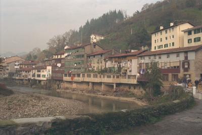 El río Deba y la retaguardia de las casas de la calle Zubieta desde Bideberri |