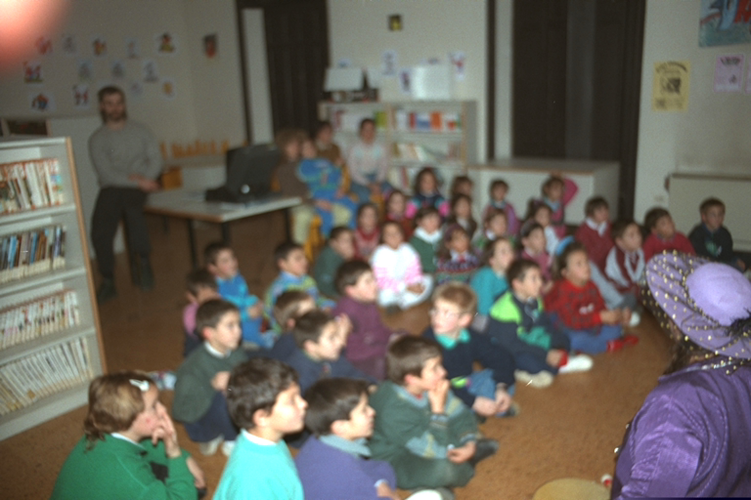 | Un grupo de niños escuchando al cuentacuentos |