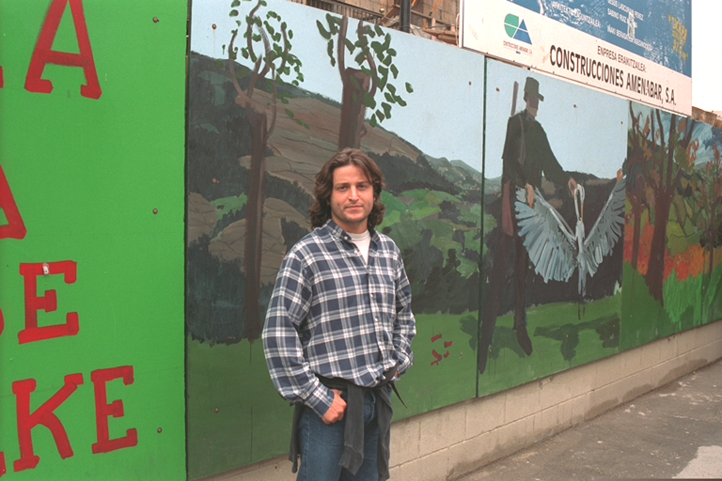 | Retrato de hombre; mural en la valla durante la renovación del Ayuntamiento |