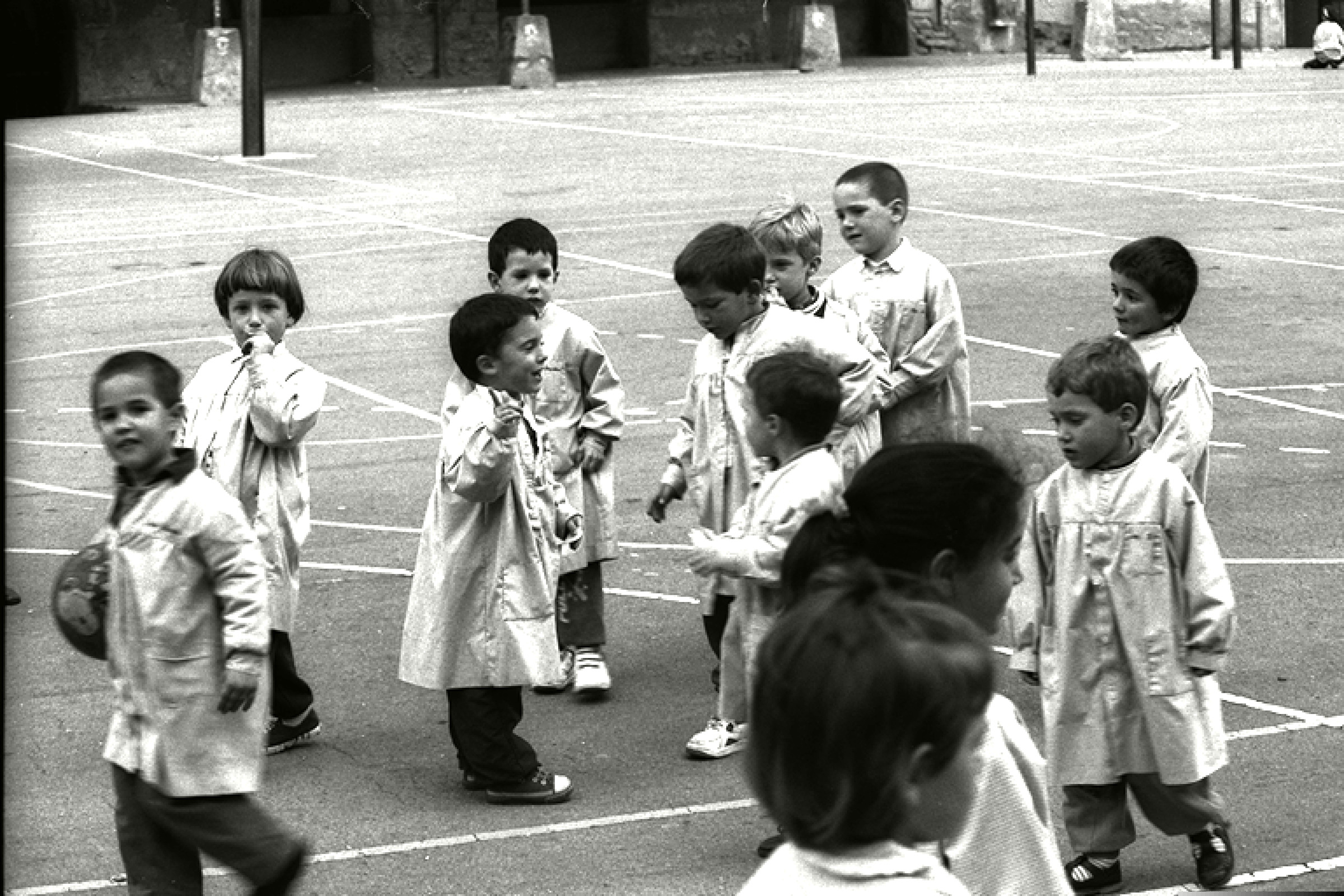 | Niños en el patio de la ikastola Aranzadi durante el recreo |