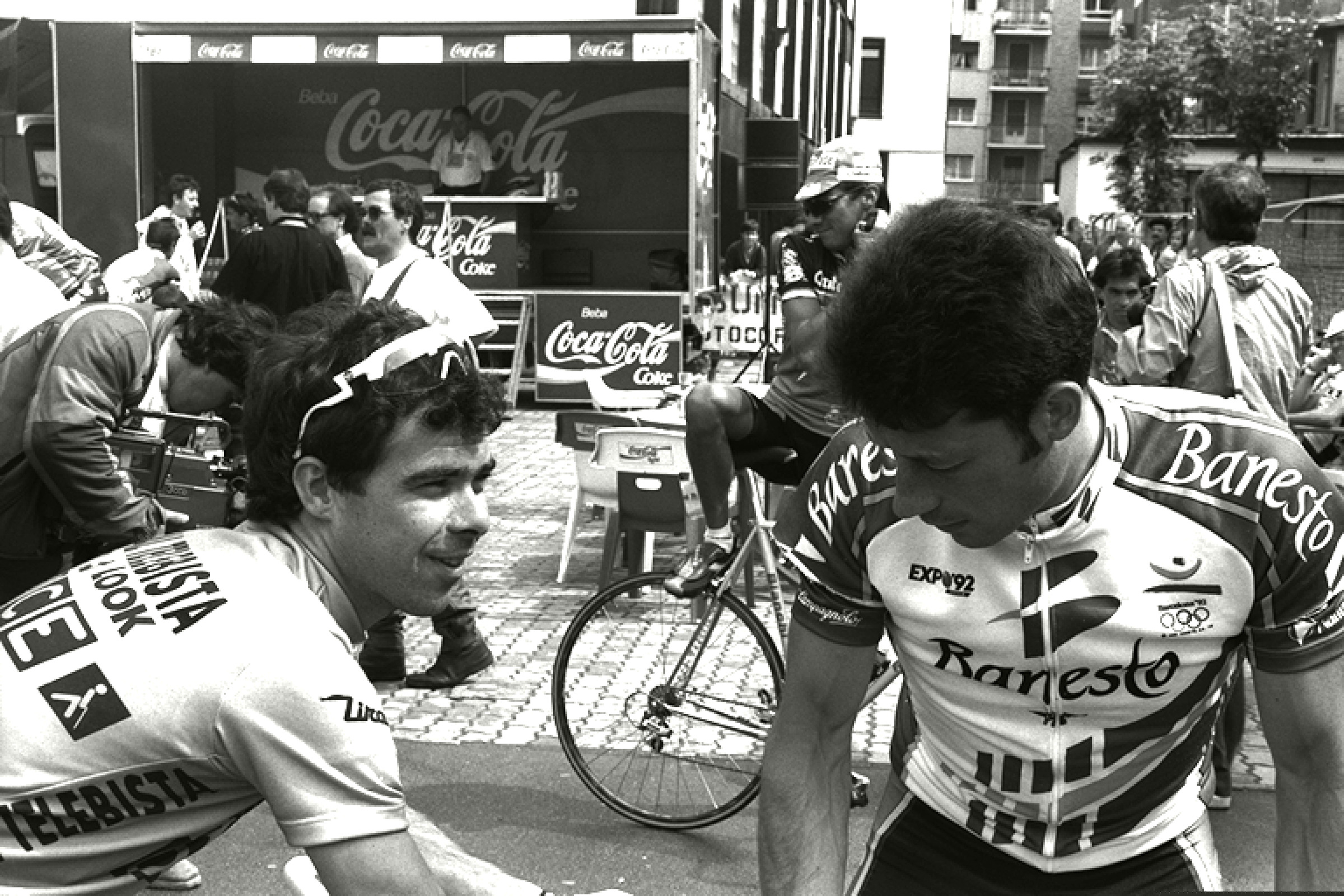 | Dos ciclistas hablando |