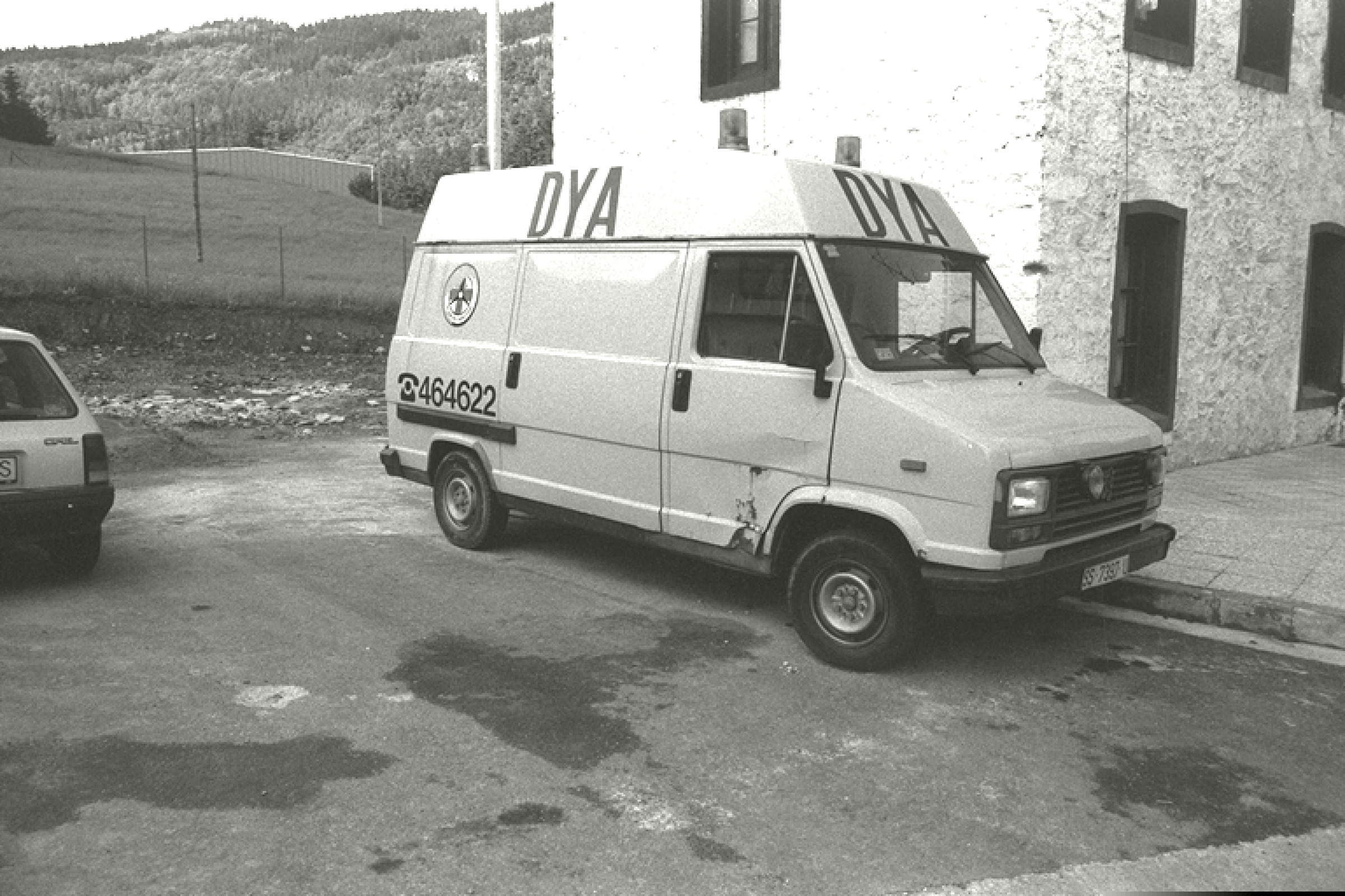 | Entrada y una ambulancia de la sede de la DYA en el barrio del Antiguo de Antzuola |