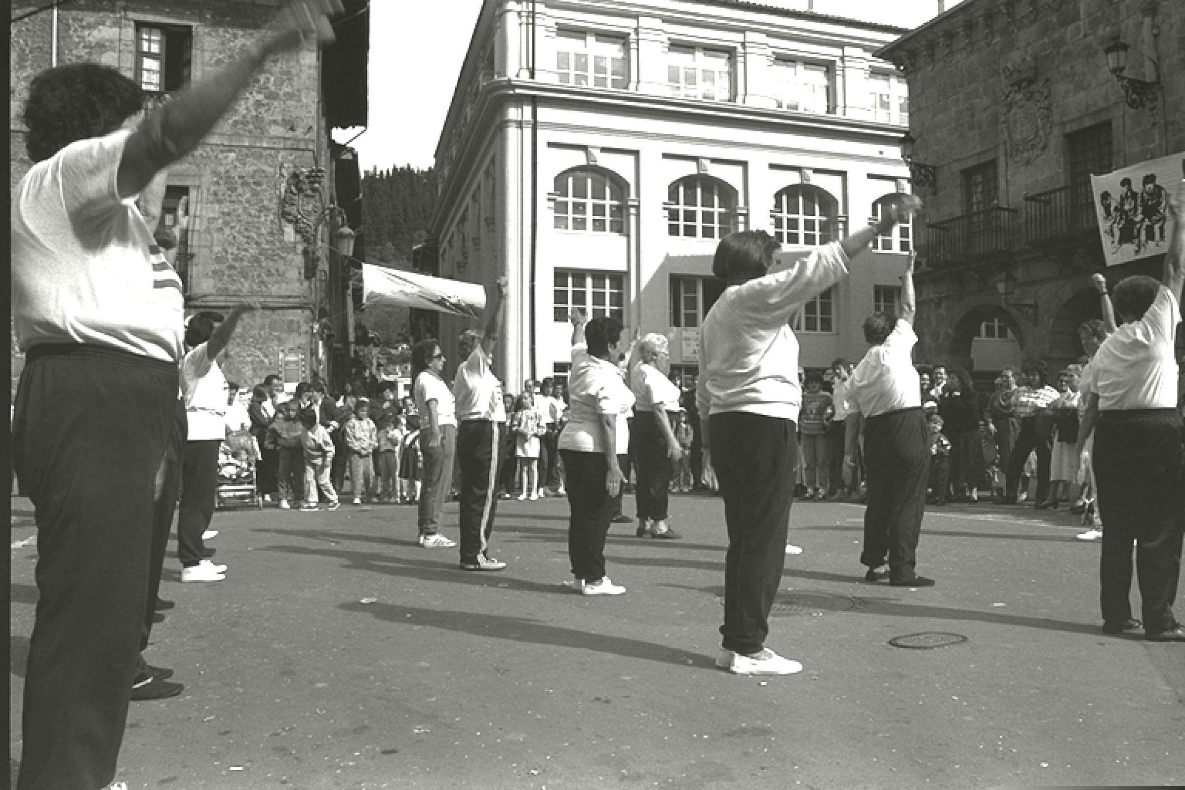 | Exhibición de diferentes deportes y actividades en la Plaza dentro de la campaña "Bizi Alternativa": gimnasia de mayores |