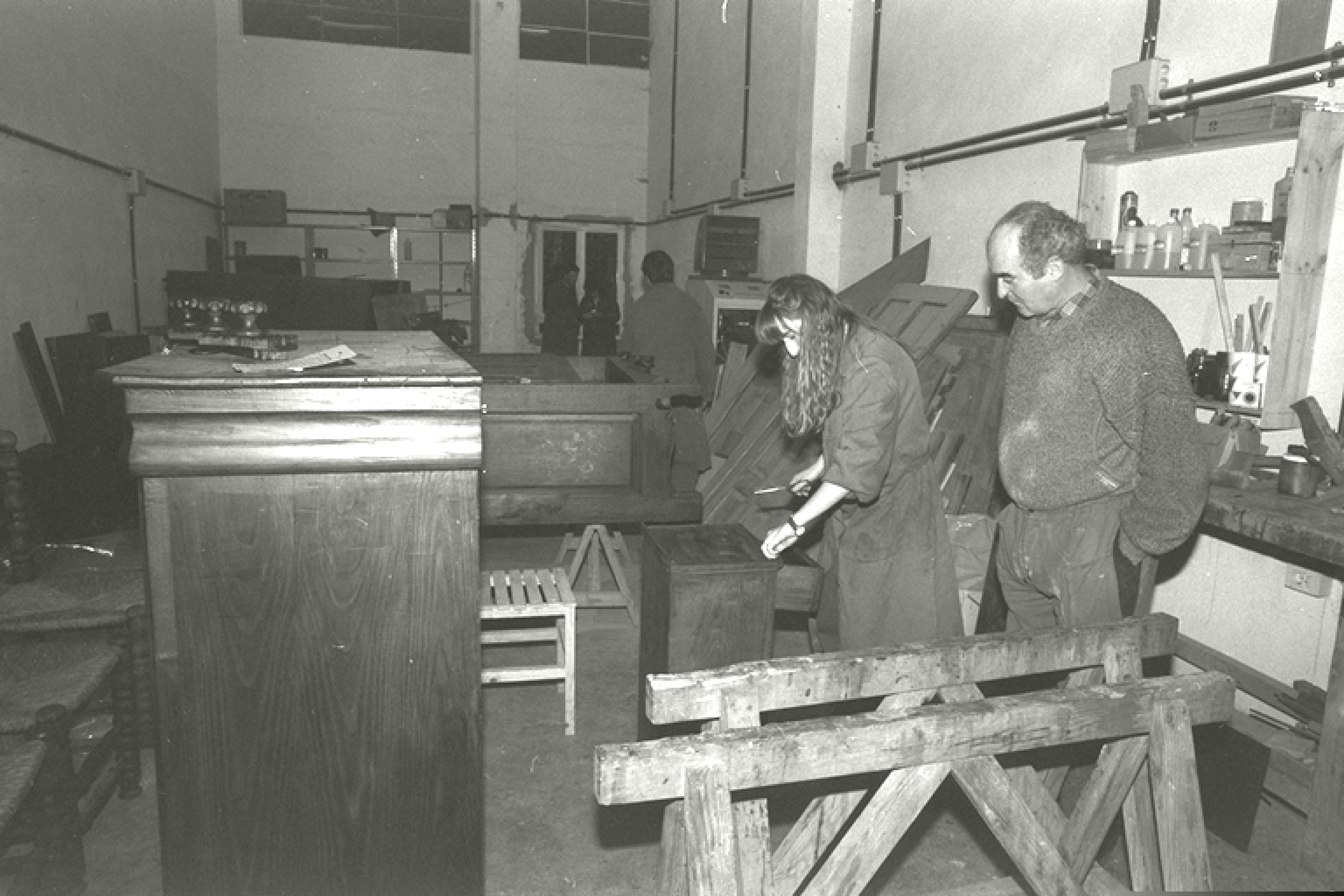 | Trabajando la madera en el taller | Taller de restauración de madera. Programa Salario Riesgo [argazki-oina, arg.] |