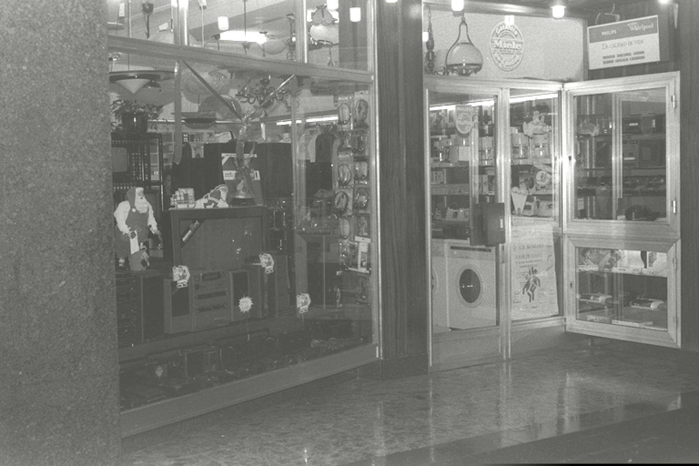| Escaparate y entrada de una tienda de electrodomésticos |