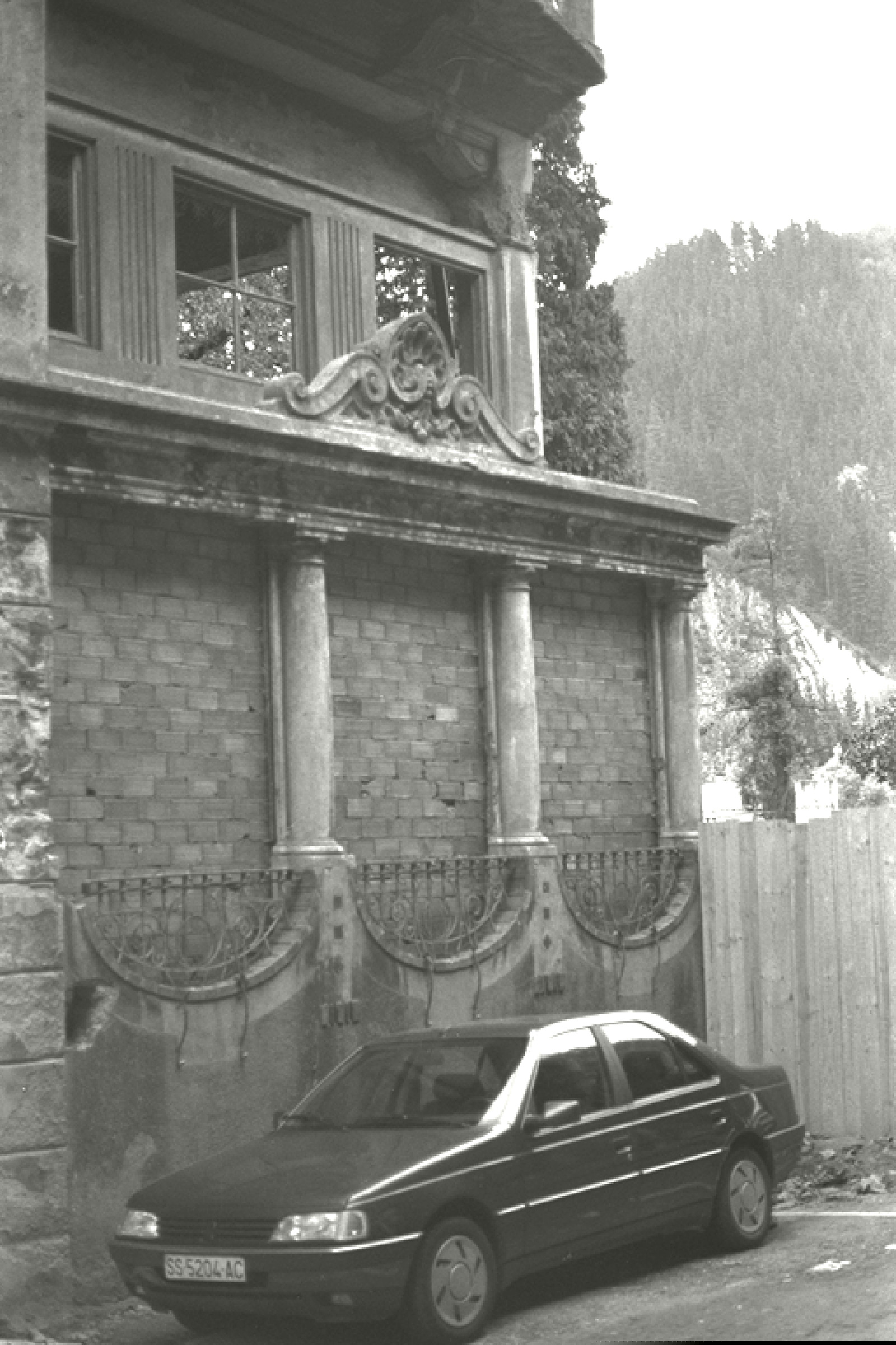 | Frontón de la casa Movilla cerrado con ladrillo |