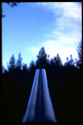 Doble cañón de una escopeta apuntando hacia arriba, visto desde atrás |