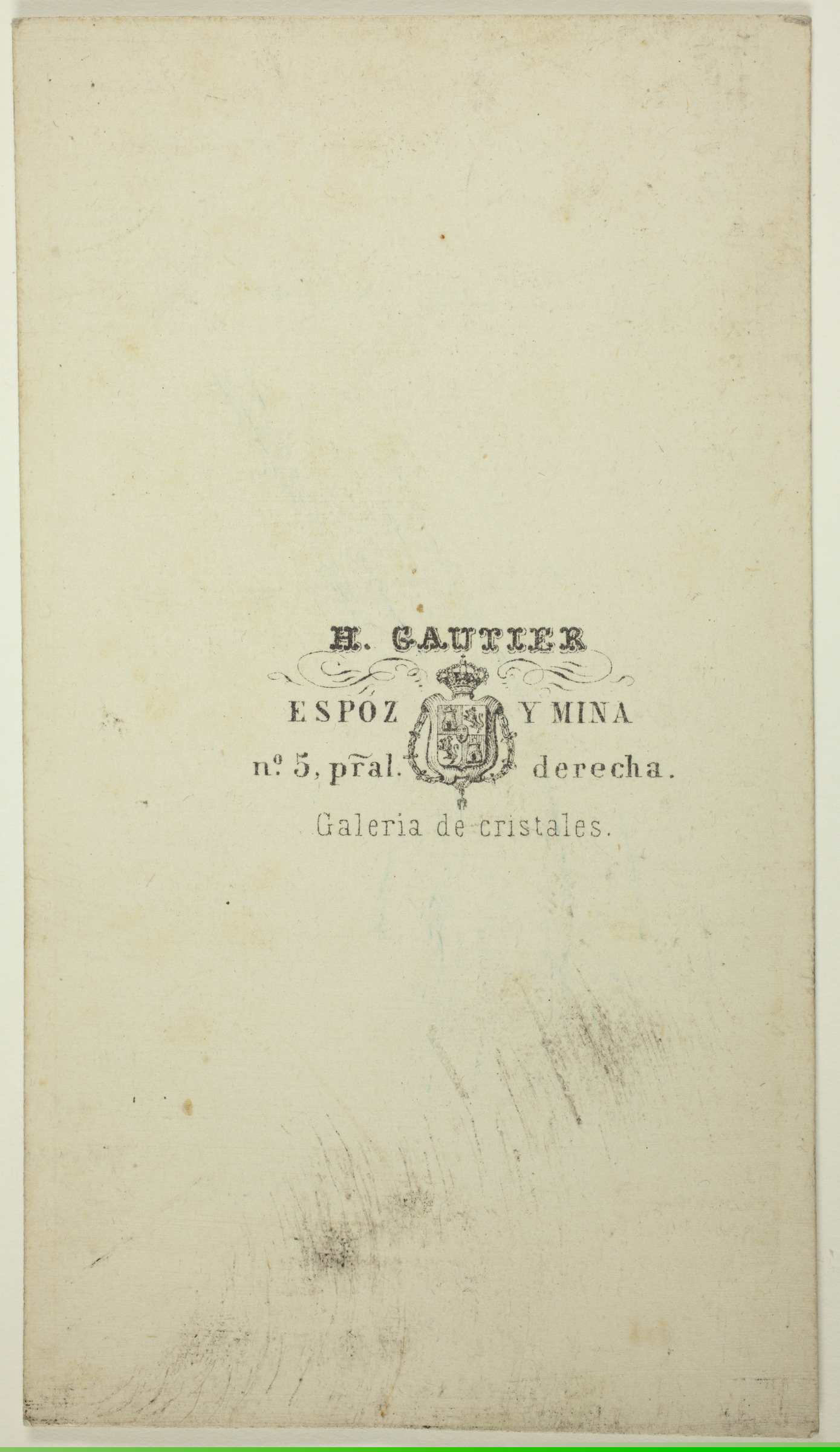 | Retrato de un hombre: plano medio | H. Gautier [imp. r.]; H. Gautier, Espoz y Mina, nº 5, pral. derecha [imp. v.] |