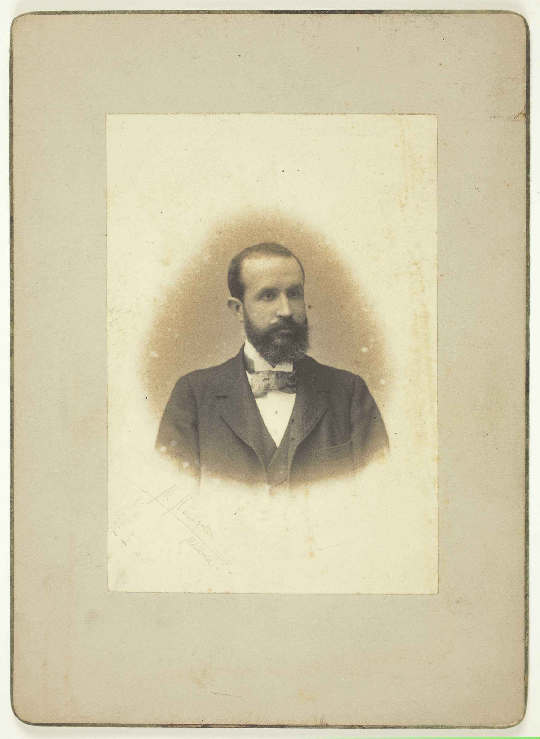 | Retrato de hombre | Madrid 8 de Abril, 1895 [sinadura:] El Conde del Valle, [sinadura:] Ignacio de Múrua y de Balzola [ms. v.]; [sinadura:] M. Huerta, Madrid [ms. r. ]; M. Huerta, fotógrafo, 3, Puerta del Sol, 3 Madrid [imp. v.] |