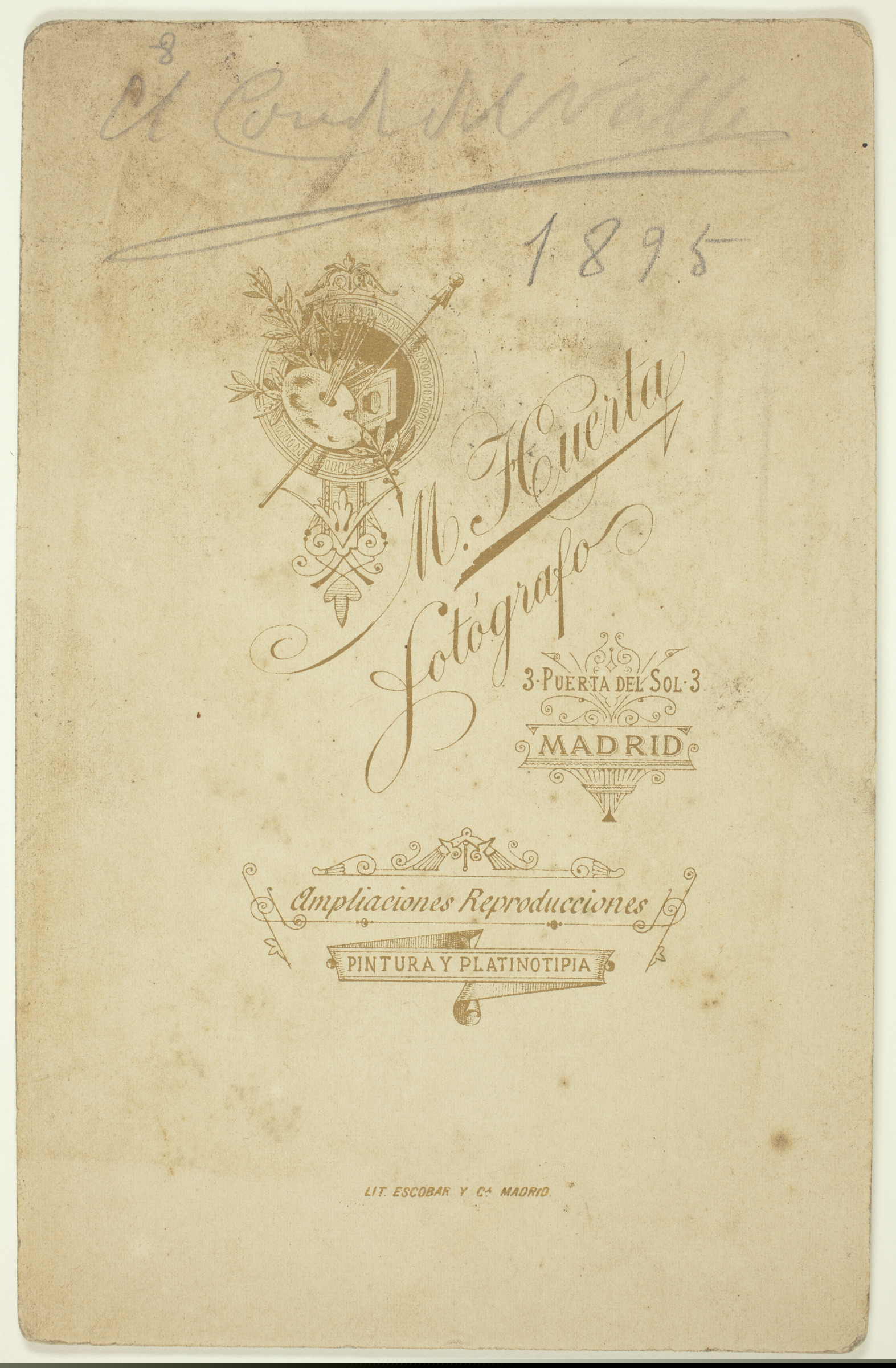 | Retrato de hombre | Ignacio de Múrua y Balzola, 4º Conde del Valle [ms. v.]; M. Huerta, 3, Puerta del Sol, 3 Madrid [imp. r. ]; M. Huerta, fotógrafo, 3, Puerta del Sol, 3 Madrid [imp. v.] |