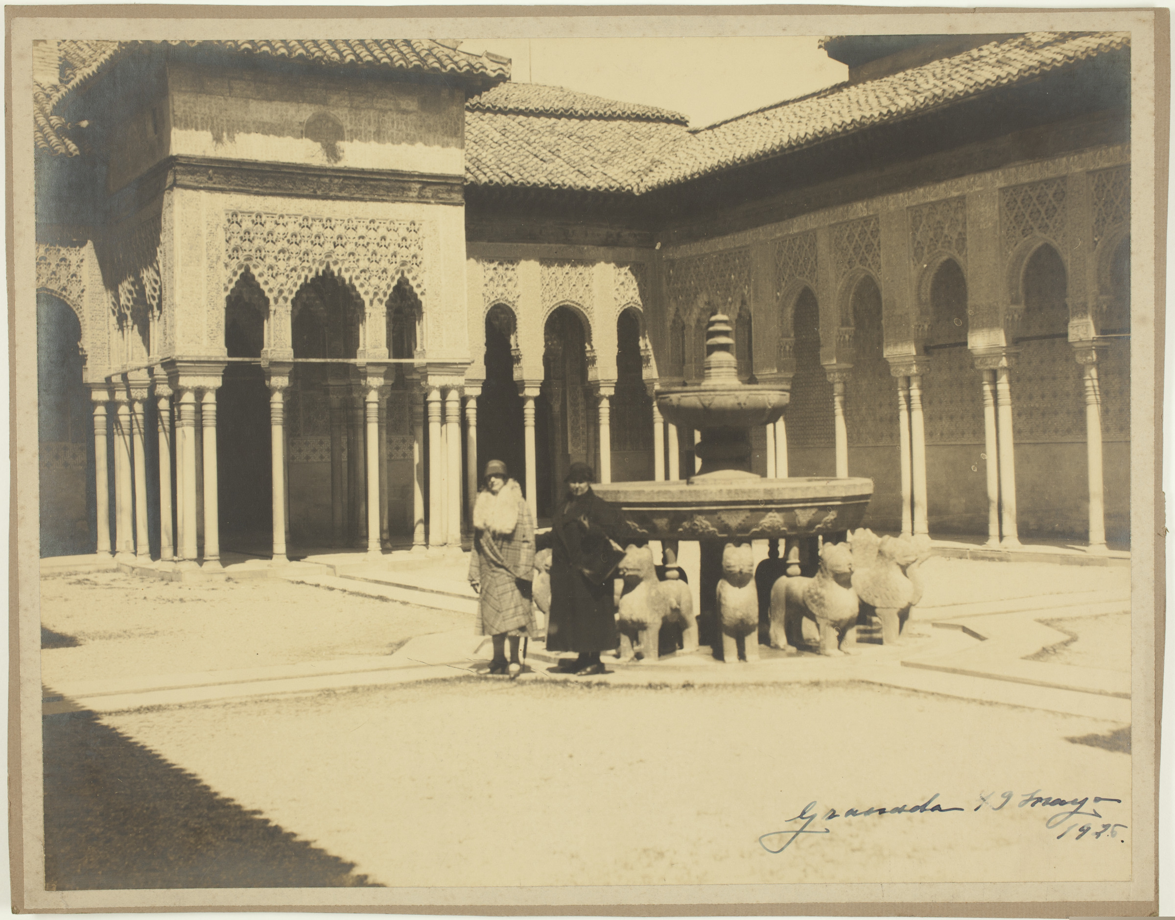 | Retrato de dos mujeres en la Alhambra | Granada 19 Mayo 1926 [ms. r.]; La de gris en piel, es la Condesa del Valle y la de negro, Ana Mª de Múrua, Vda. de Velasco [ms. v.] |