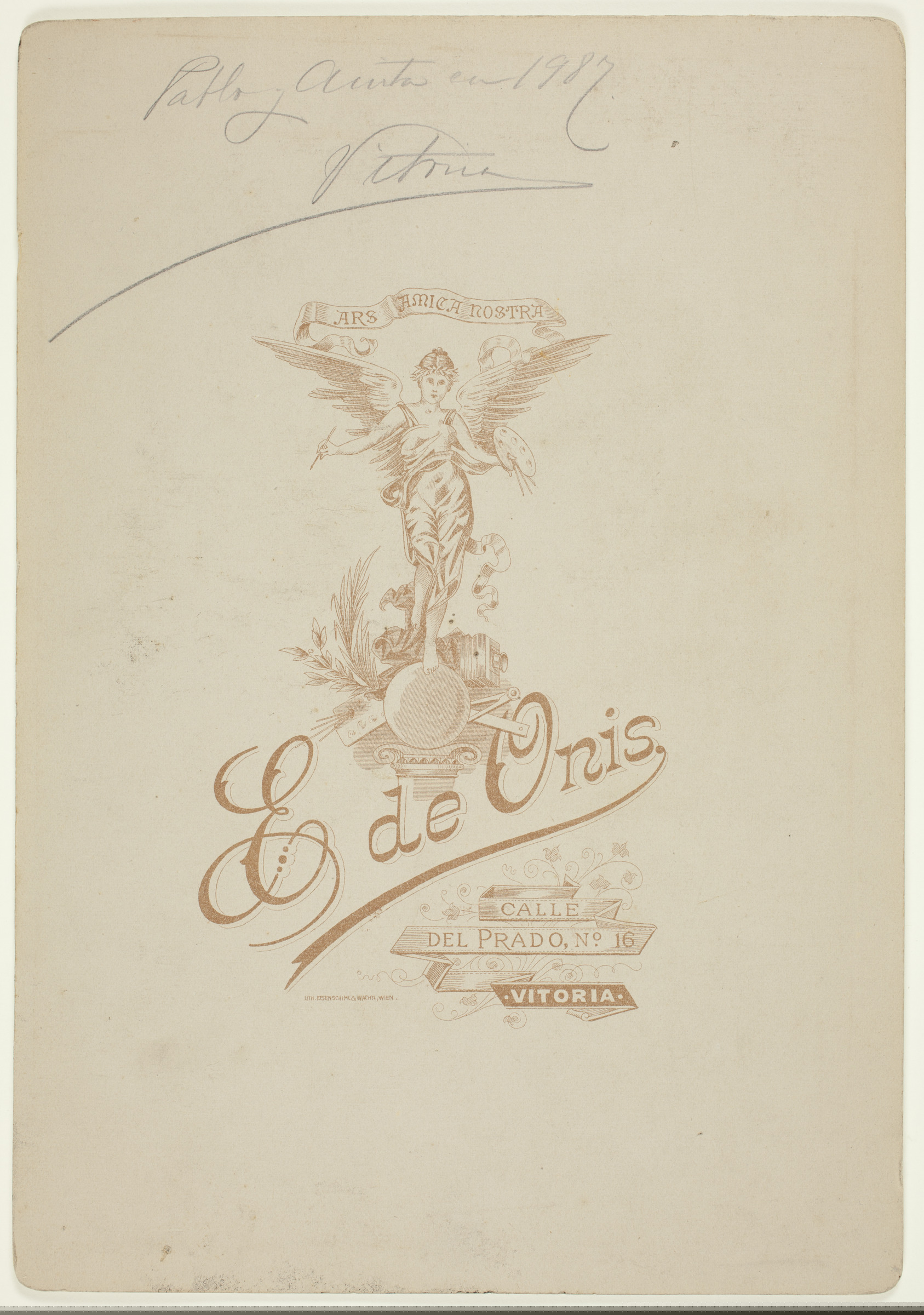 Retrato de un hombre y una mujer | Pablo y Anita en 1897 [sic], Vitoria [ms. v.]; E. de Onis, Prado 16, Vitoria [imp. r.]; E. de Onis, Calle del Prado nº 16, Vitoria [imp. v.] |