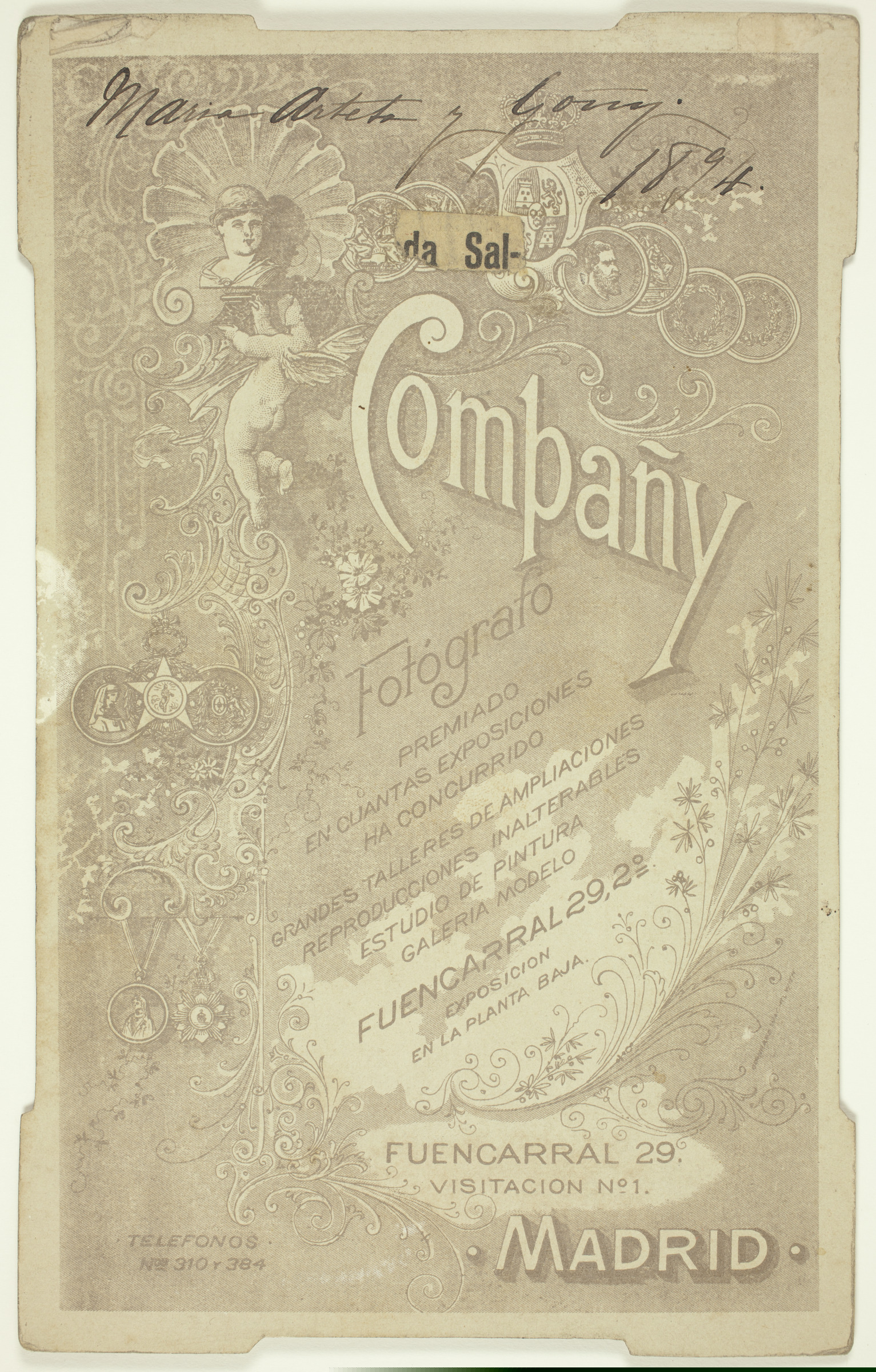 | Retrato de niña en la primera comunión | María Arteta y Goñy, 1894 [ms. v.]; Company, Fuencarral, 29, Visitación 1, Madrid [imp. r.]; Company fotógrafo, Fuencarral 29, Visitación 1, Madrid [imp. v.] |