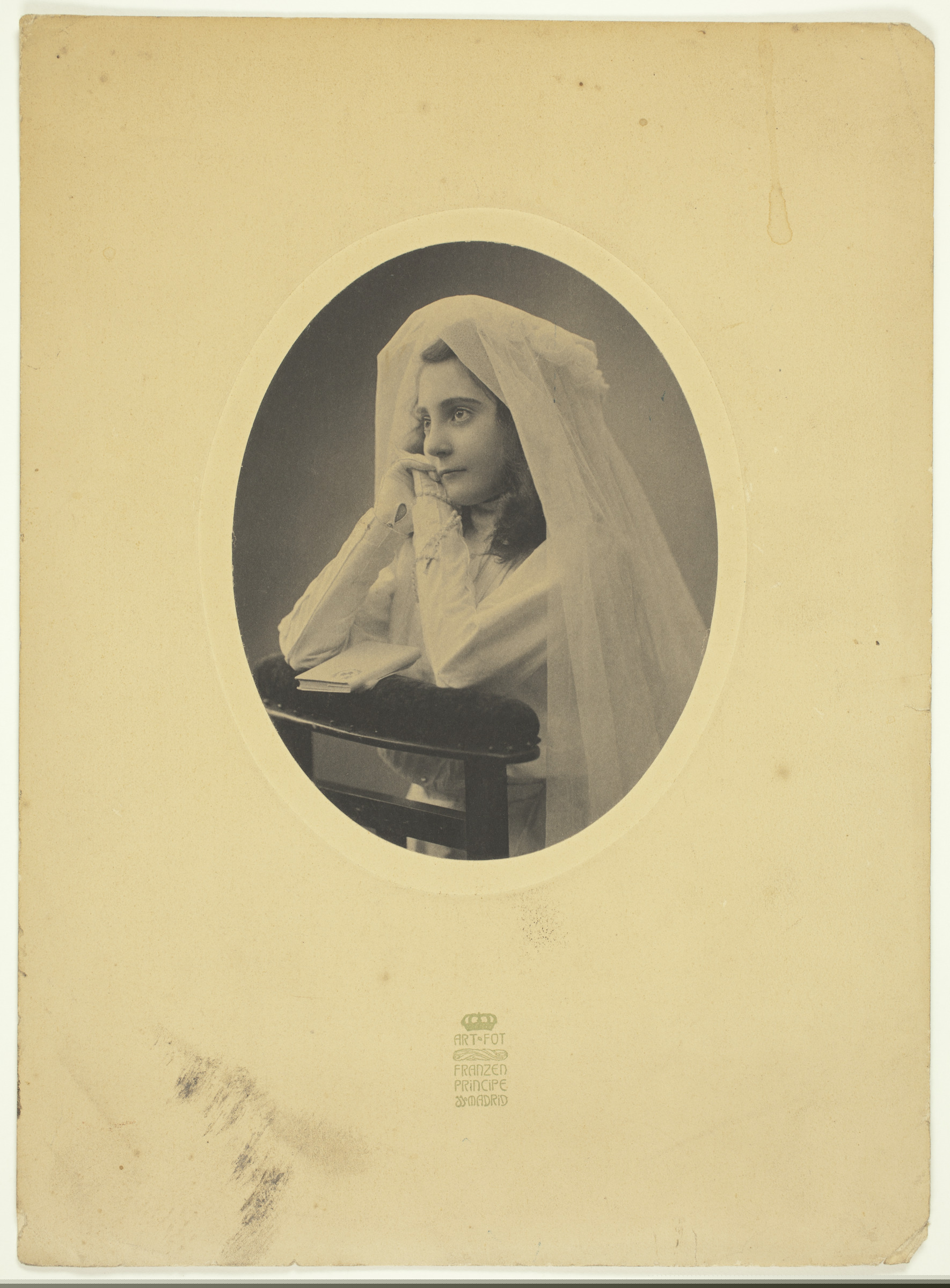 | Retrato de niña en la comunión | Angelita de Algorta y Abaroa, 1909 [ms. v.]; Art. Fot. Franzen, Príncipe, Madrid [imp. r.] |