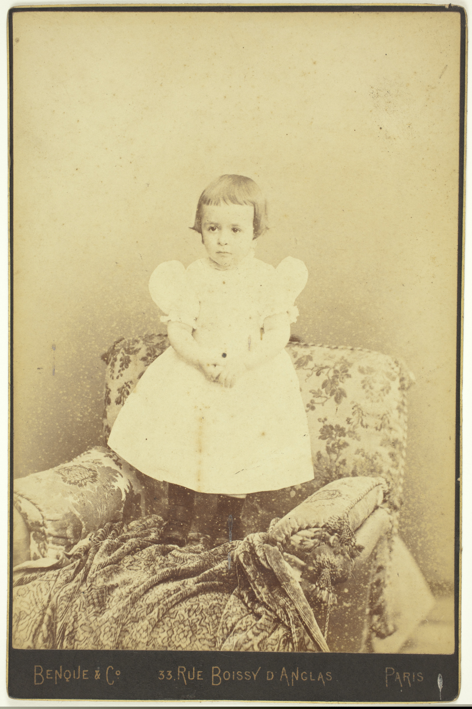| Retrato niño | José Mª Artazcoz y Labayen [ms. v.]; Benque & Co., 33, Rue Boissy d'Anglas, Paris [imp. r.]; Benque & Co., 33, Rue Boissy d'Anglas, Exposition. 5, Rue Royale, Paris [imp. v.] |