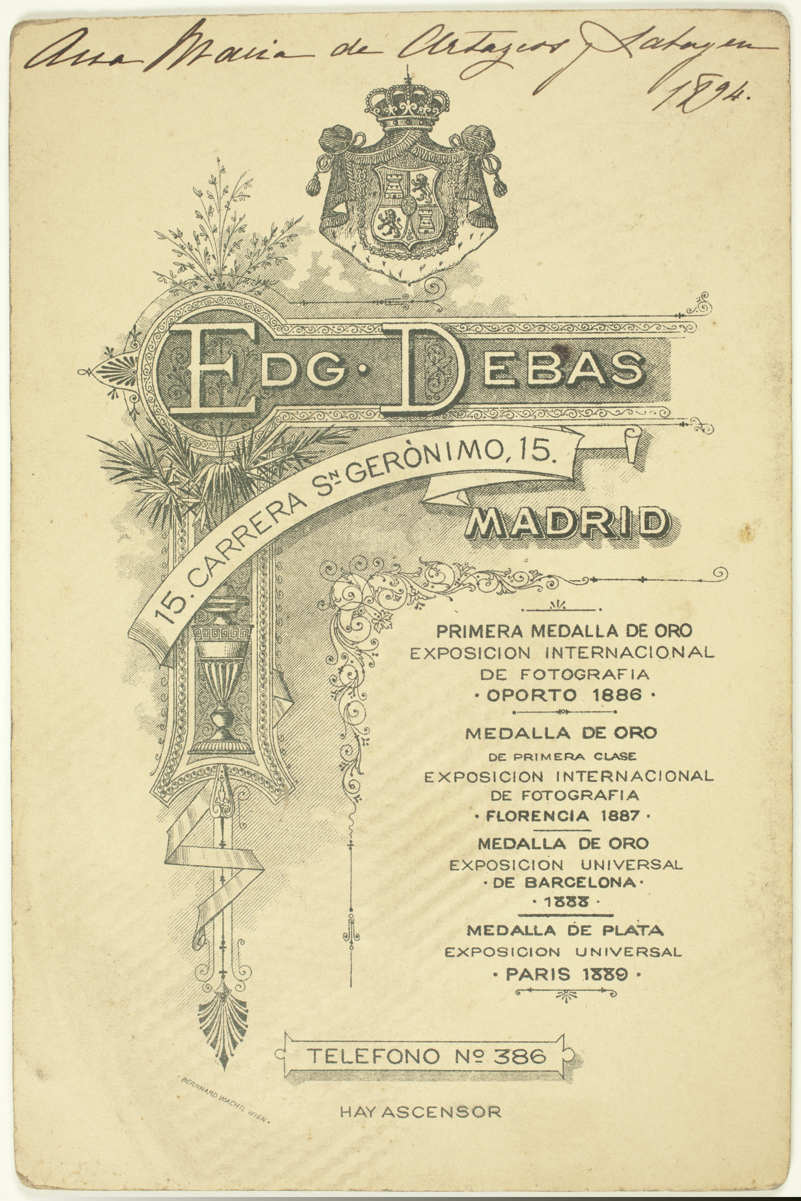 | Retrato niño | Ana María de Artazcoz y Labayen, 1894 [ms. v.]; Edg. Debas, Cra. Sn. Gerónimo 15, Madrid [imp. r.]; Edg. Debas, 15. Carrera Sn. Gerónimo, 15 Madrid [imp. v.] |