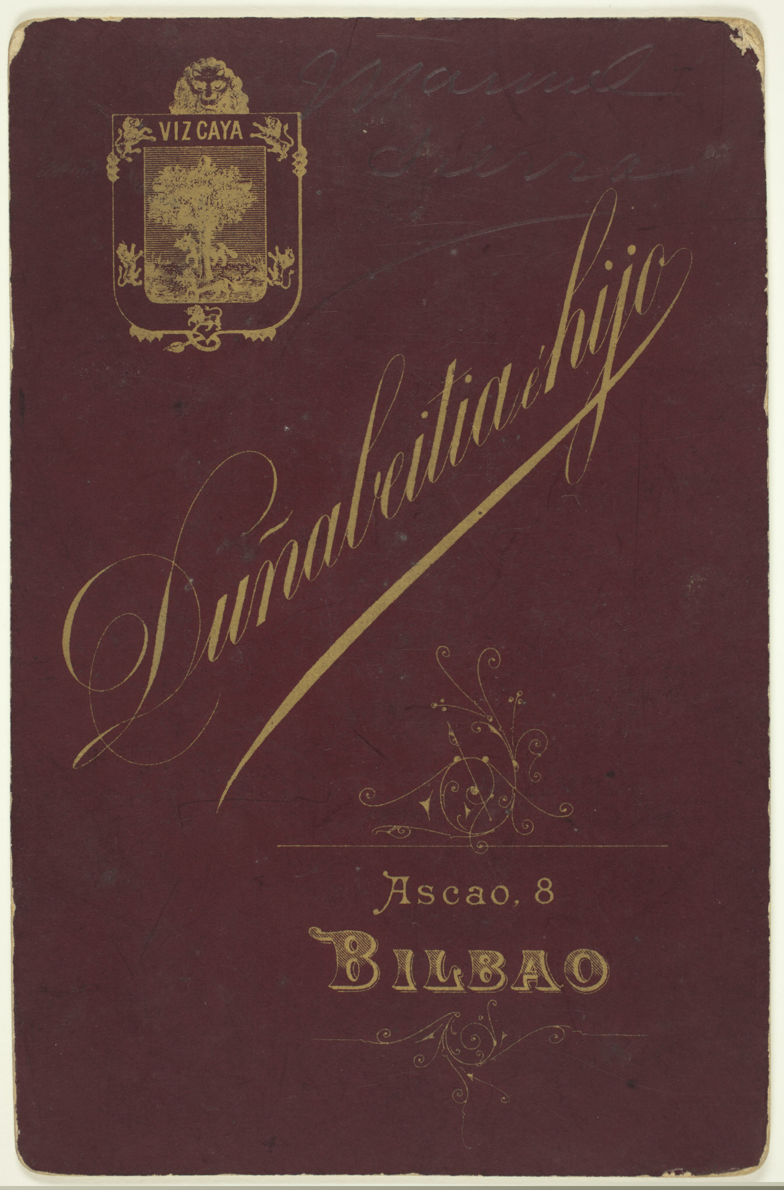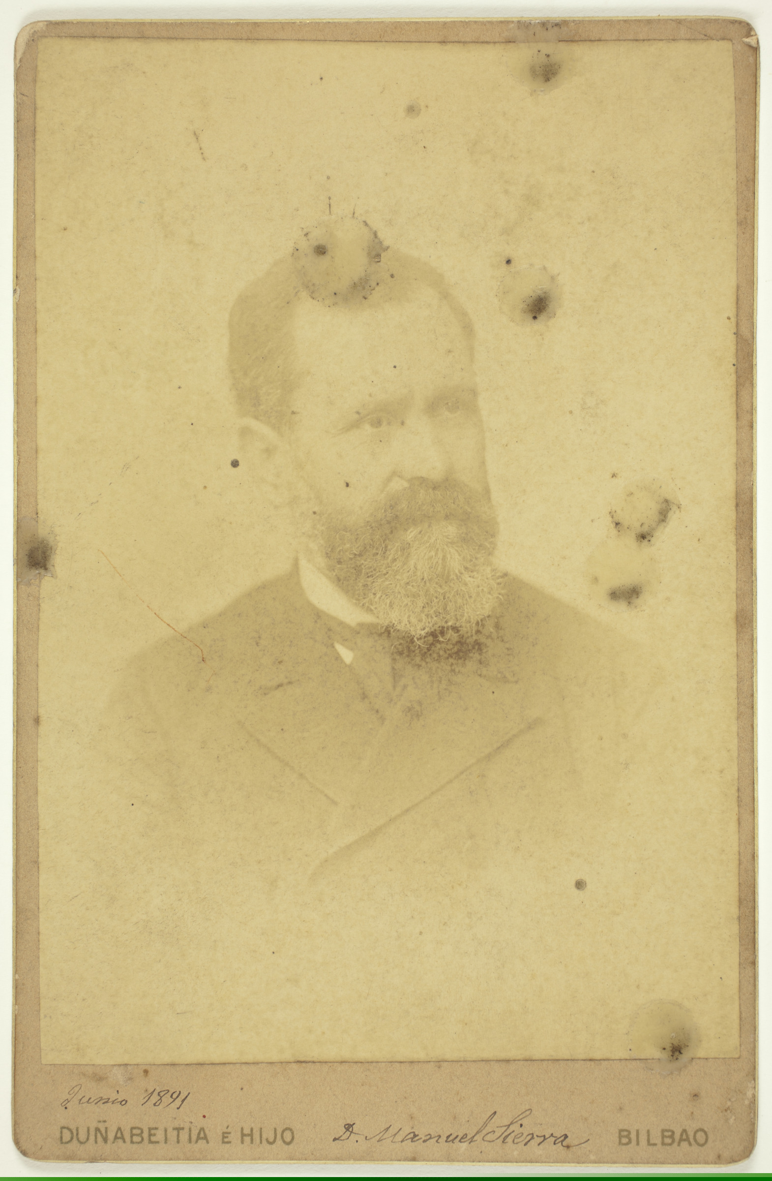 | Retrato de hombre | Junio 1891, D. Manuel Sierra [ms. r.]; Manuel Sierra [ms. v.]; Duñabeitia é Hijo, Bilbao [imp. r.]; Duñabietia é hijo, Ascao, 8, Bilbao [imp. v.] |