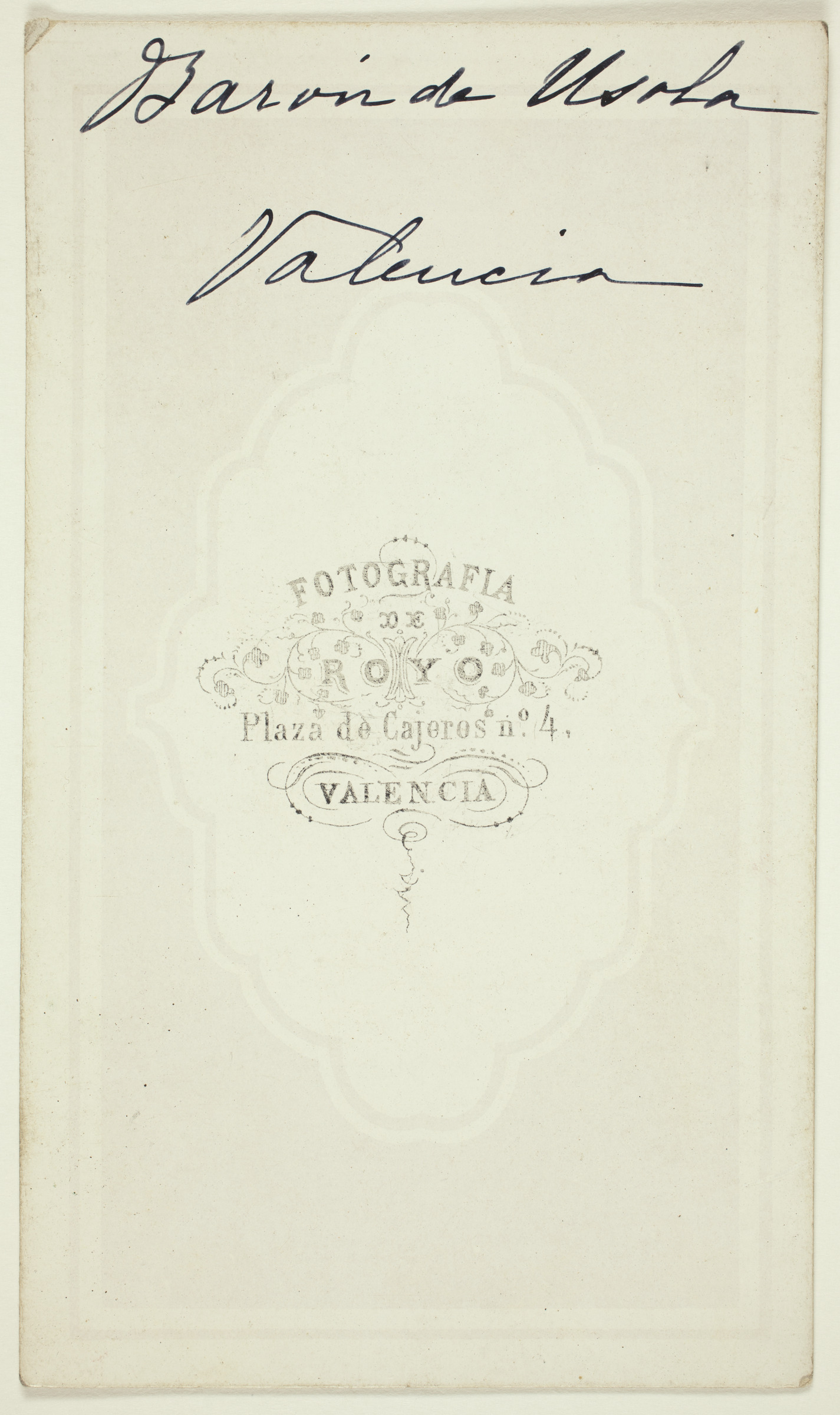 | Retrato Hombre | Barón de Usola, Valencia [ms. v.]; Fotografía de Royo, Plaza de Cajeros, 4, Valencia [imp. v.] |