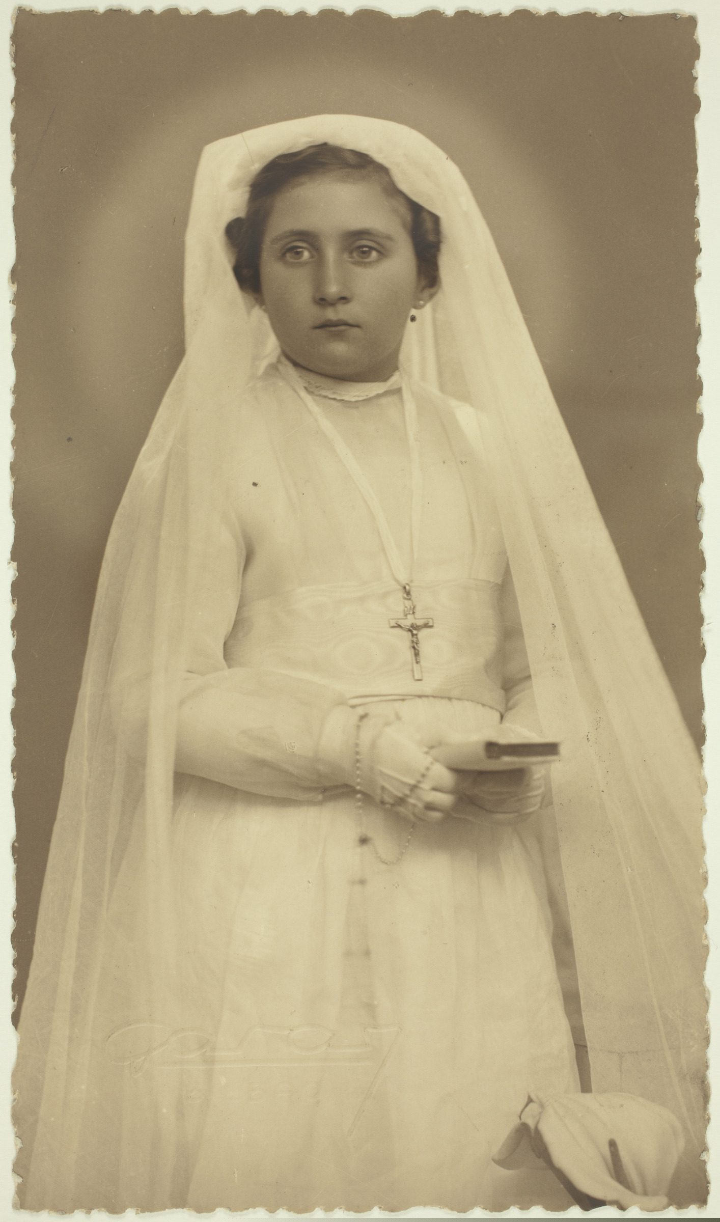 | Retrato de niña en la Primera Comunión | Conchita de Urrutia y Araluce, Bilbao, 30-IV-38 [ms. v.]; Garay, Bilbao [imp. r.] |