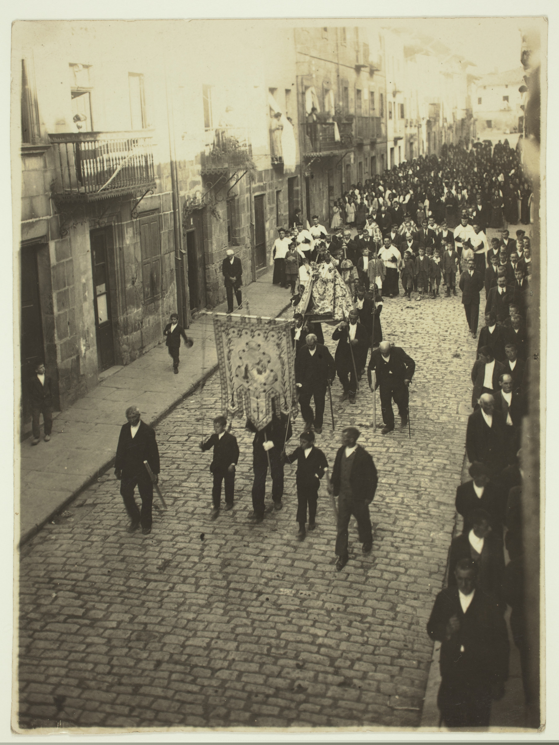 | Procesiones por las calles | C. del Valle, Procesión del día del Rosario, 4 Octubre 1914 en la calle de Berriochoa, en Elorrio [ms. v.] |