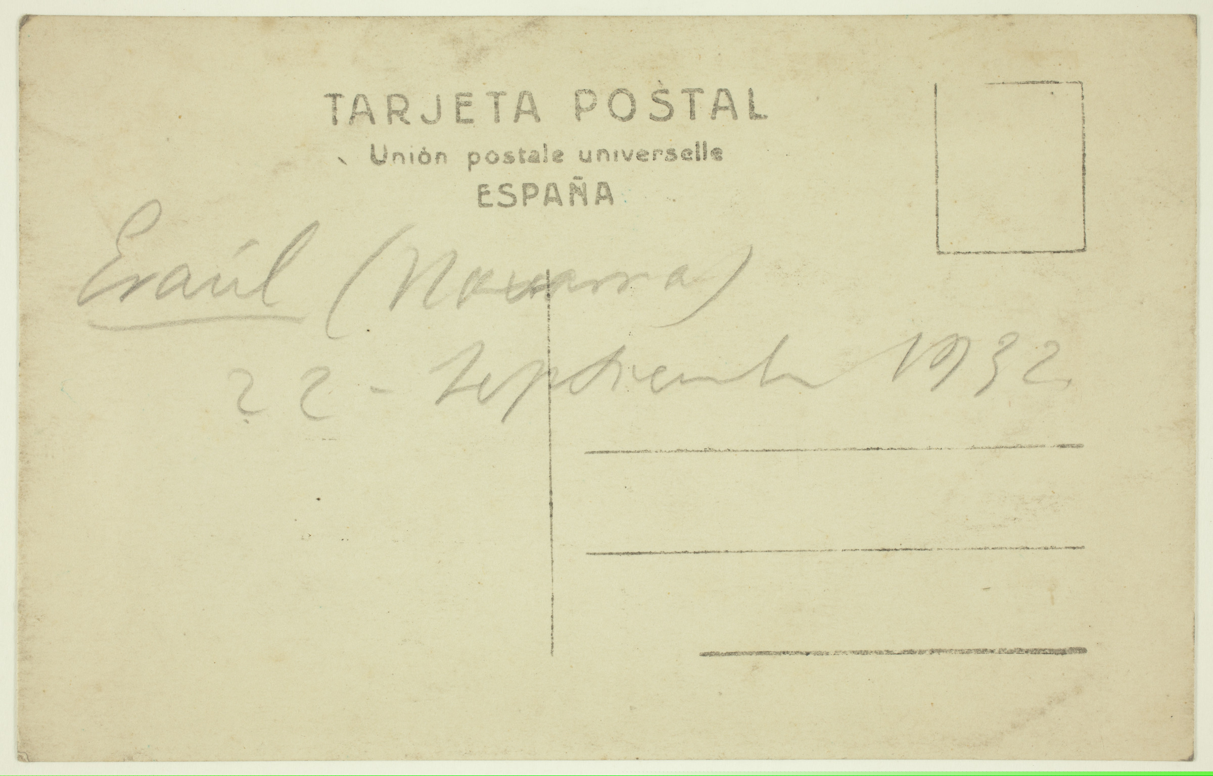 | Vista del pueblo de Eraul; campos de cultivo en primer plano | Eraúl (Navarra) 22 Septiembre 1932 [ms. v.] |