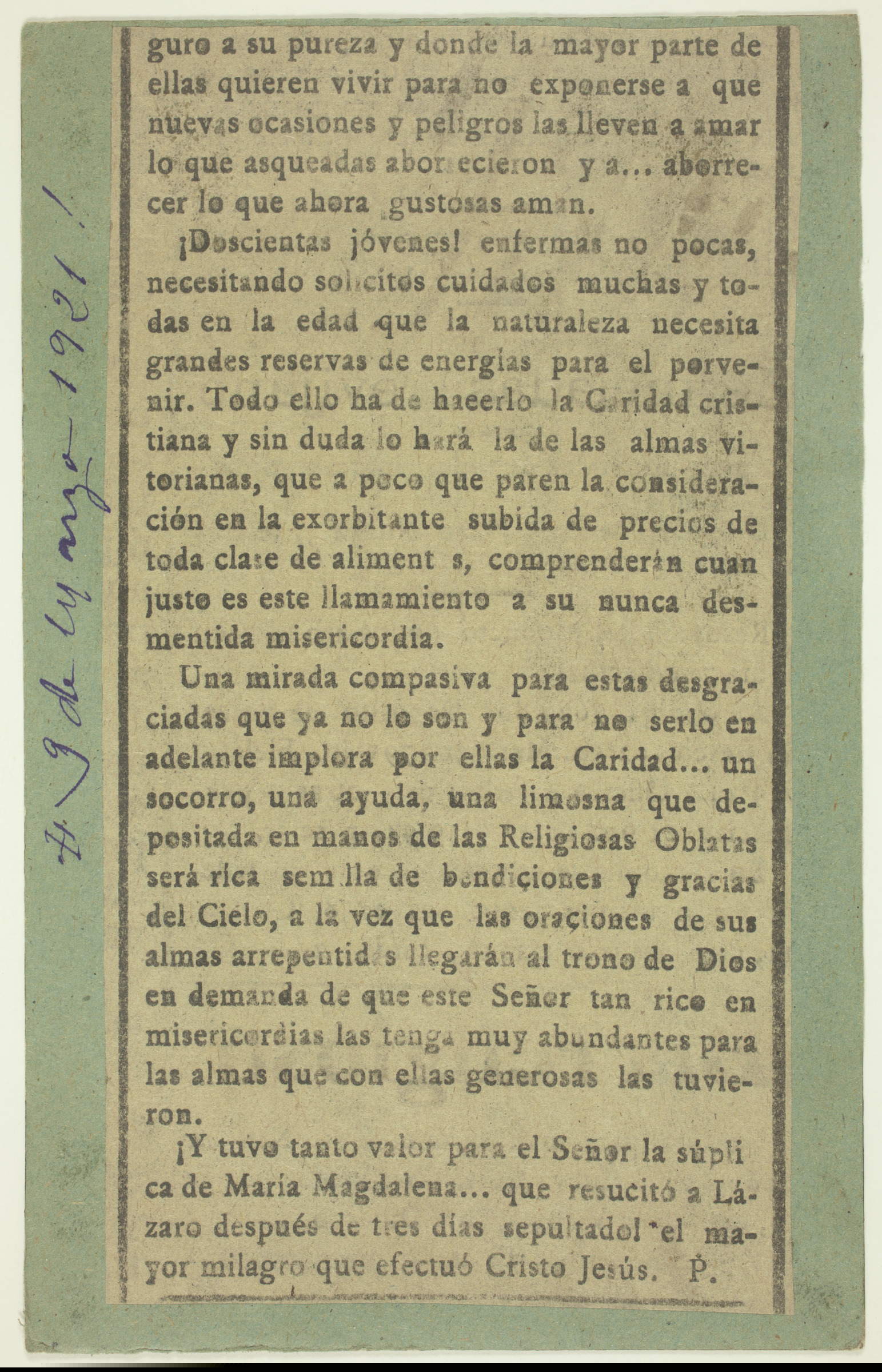 | Imagen religiosa: Virgen María | 9 de marzo de 1921! [ms. v.] |