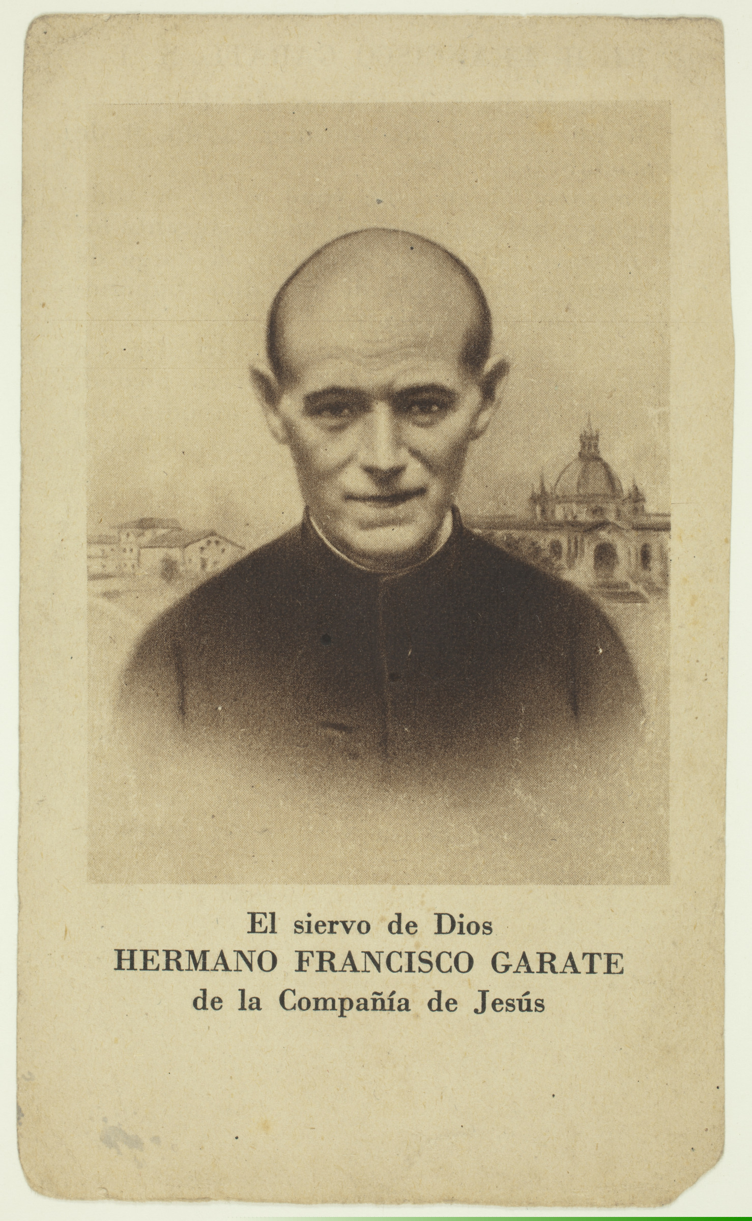 | Imagen religiosa: Hermano Garate | El siervo de Dios Hermano Francisco Gárate de la Compañía de Jesús [imp. r.]; El H. Francisco Gárate, S.J. Nació el día 3 de Febrero de 1857. Murió en olor de santidad el día 9 de septiembre de 1929. Contaba 72 años de edad y 55 de vida religiosa, habiendo desempeñado durante los 41 últimos, con toda fidelidad, el cargo de Portero en el Colegio de Estudios Superiores de Deusto (Bilbao). Fué varón insigne por sus virutdes, en particular por su humildad, pobreza, piedad, caridad y paciencia. A todos atendía con bondadosa dulzura, inspirando una confianza sin límites. Novena o Triduo, oración para todos los días. Amorosísimo Dios, que nos mostrasteis con las admirables virtudes del H. Francisco Gárate cuán dichosa es a vuestros ojos la vida escondida en humildad, obediencia y trabajo [...] Comuníquense los favores recibidos y las limosnas y pídase propaganda al Apartado 73. - Bilbao (con aprob. ecles.) [imp. v.] |
