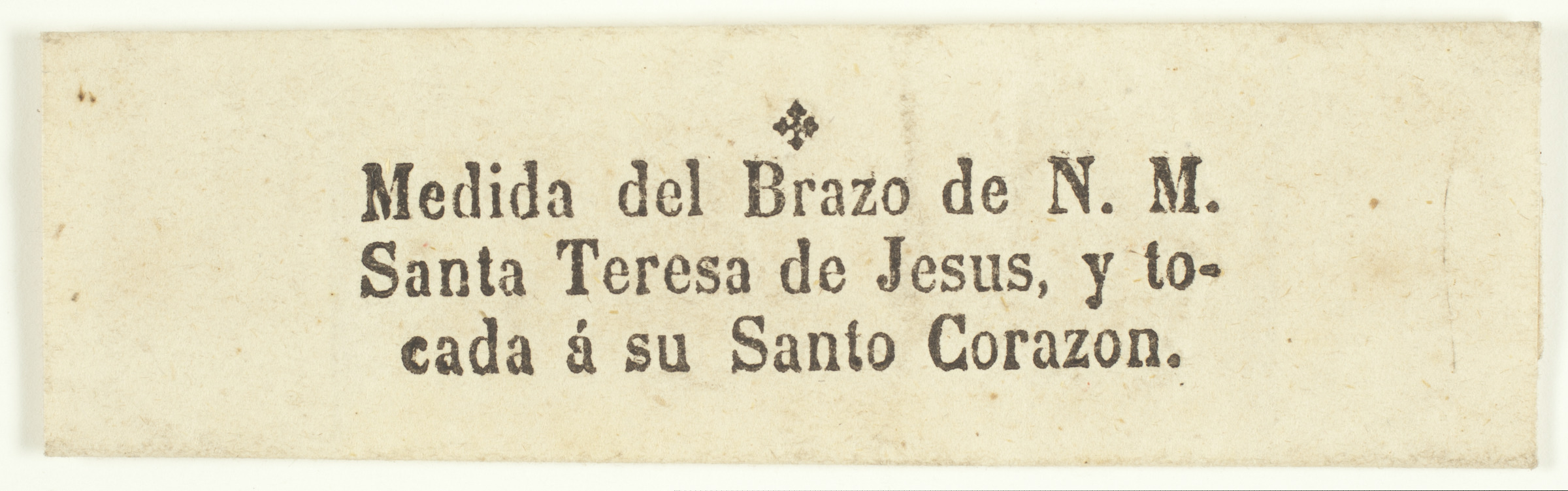 | Escrito | Medida del Brazo de N.M. Santa Teresa de Jesus, y tocada a su Santo Corazón [imp. r.] |