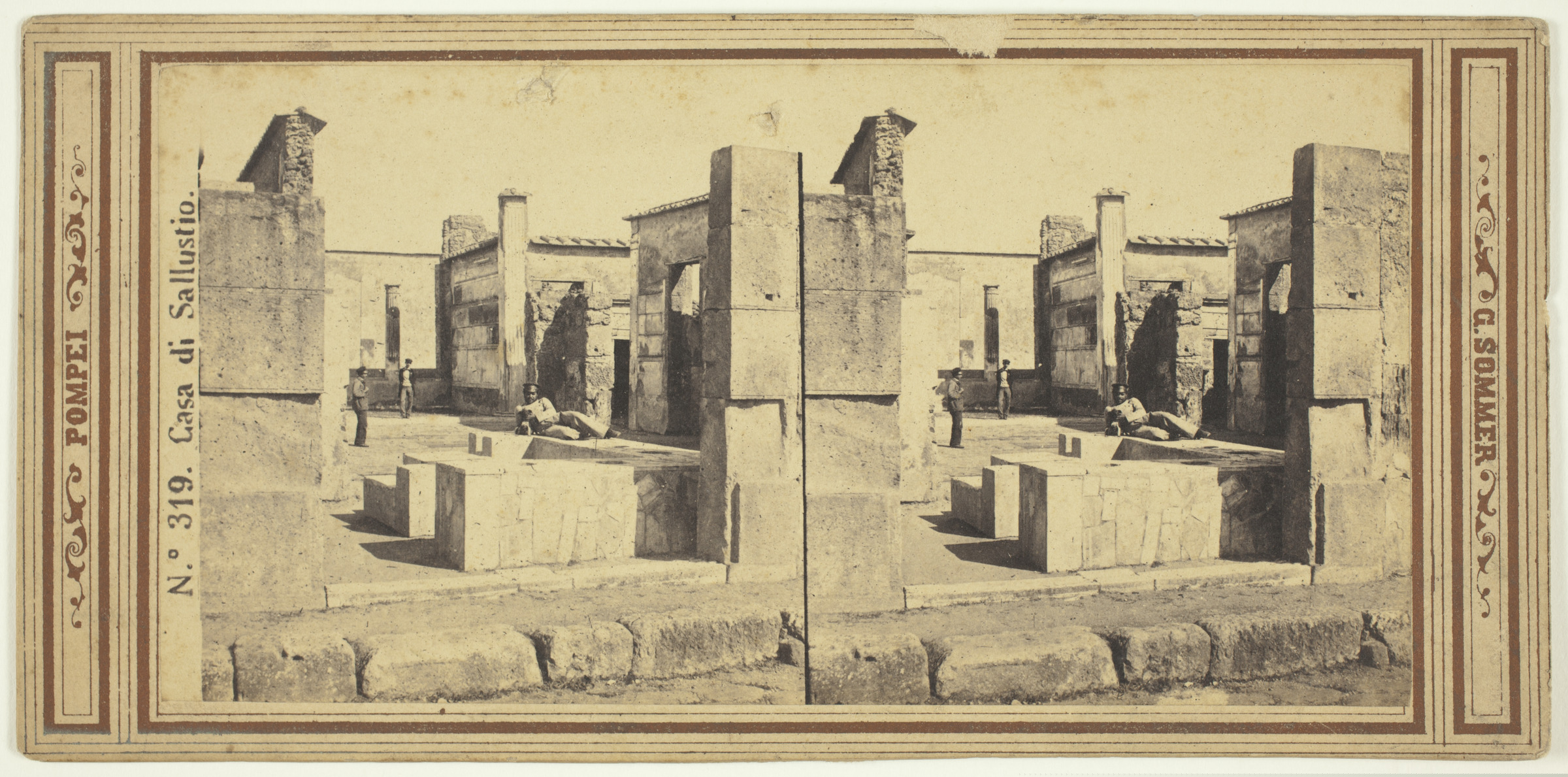 Hombre tumbado sobre ruinas | Pompei. Nº 319. Casa di Sallustio. G. Sommer [imp. r.] |