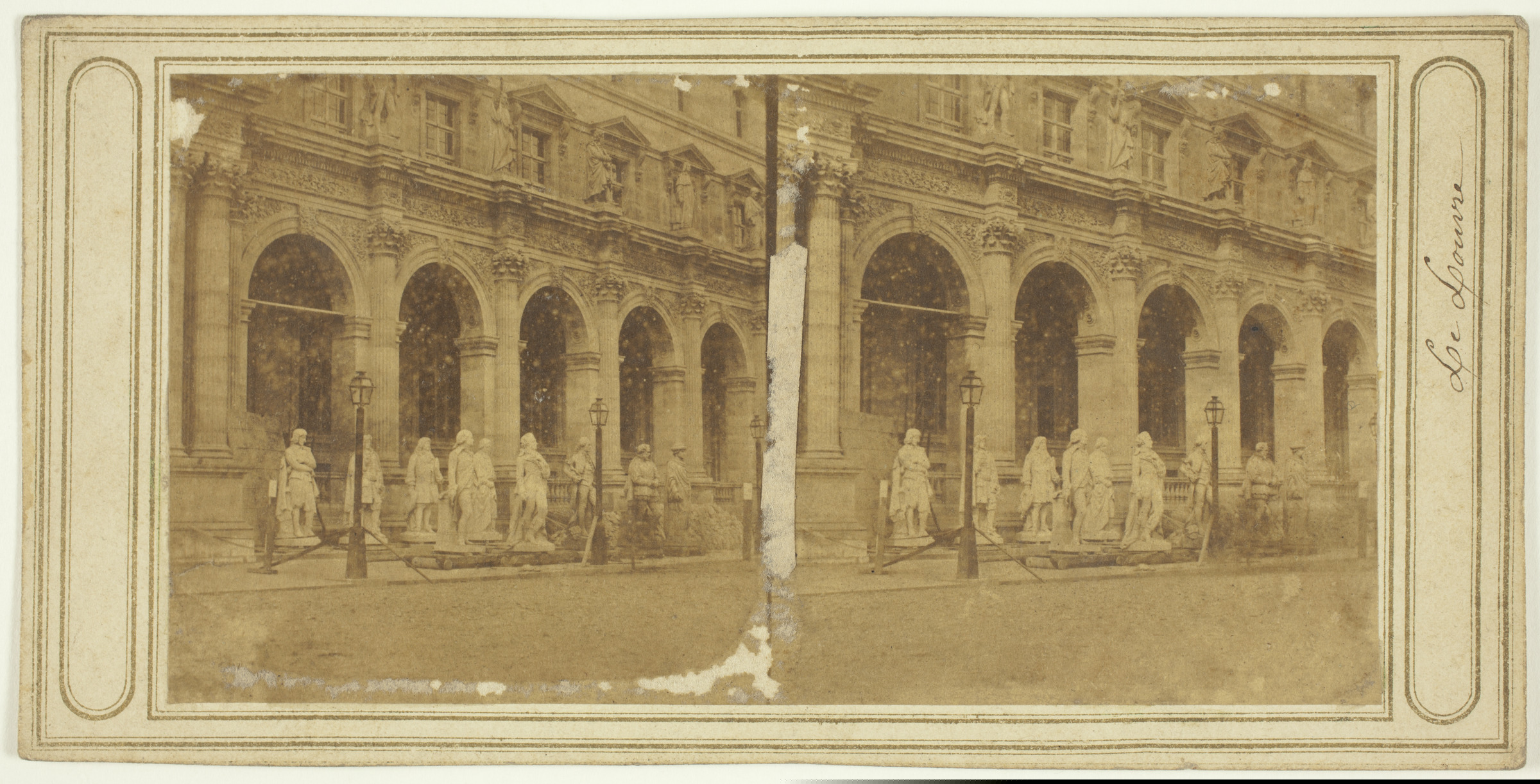 | Fachada del Museo del Louvre de París: estatuas en el antecedente | Le Louvre [ms. r.] |