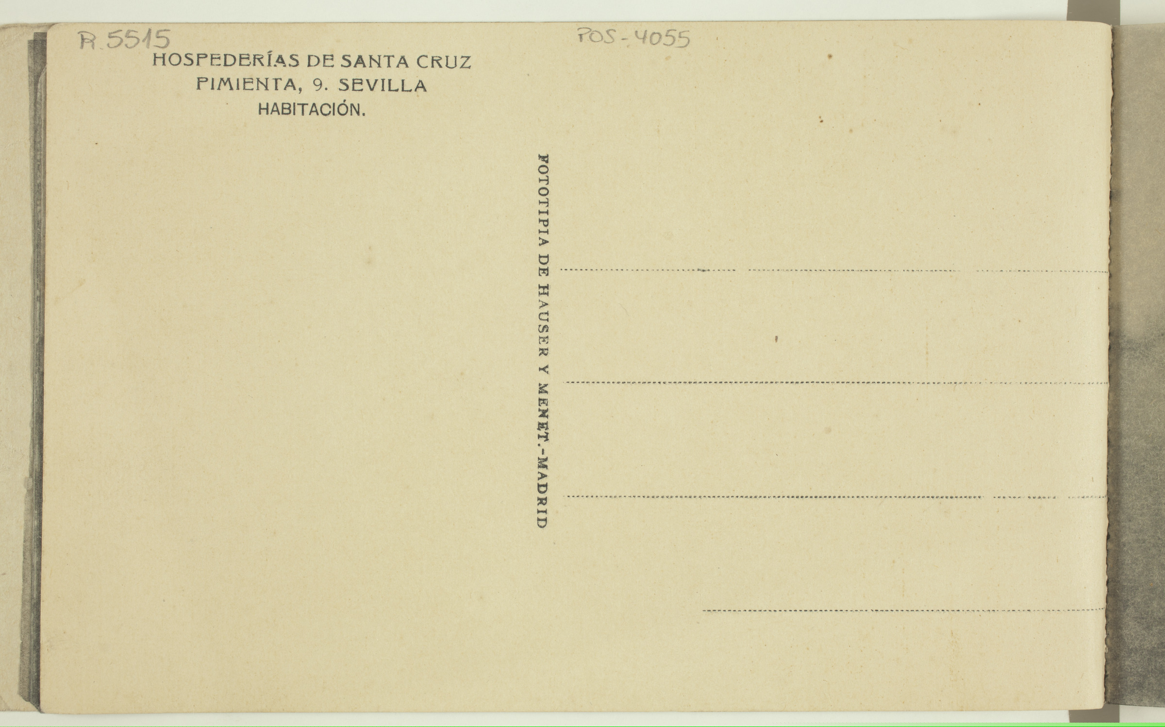 Habitación | Hospederías de Santa Cruz, Pimienta, 9, Sevilla, Habitación; Fototipia de Hauser y Menet. - Madrid [imp. v.] |