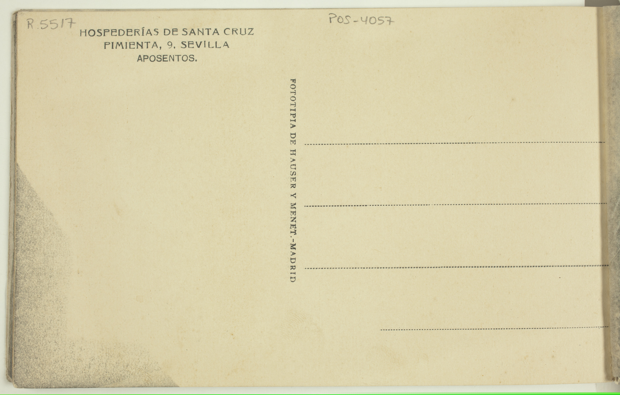 Habitación | Hospederías de Santa Cruz, Pimienta, 9, Sevilla, Aposentos; Fototipia de Hauser y Menet. - Madrid [imp. v.] |