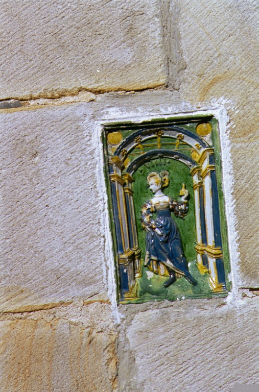 | Cerámicas en la fachada reformada de la casa Agirrebeña: detalles |