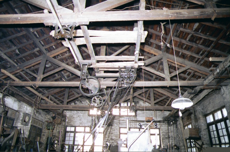 Taller Eguren: vista interior | 9-II-94, Vista parcial de la transmisión general [ms.v.] |