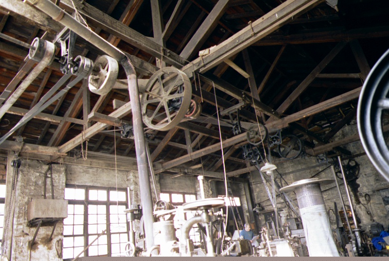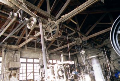 Taller Eguren: vista interior | 9-II-94, Vista parcial de la transmisión general [ms.v.] |