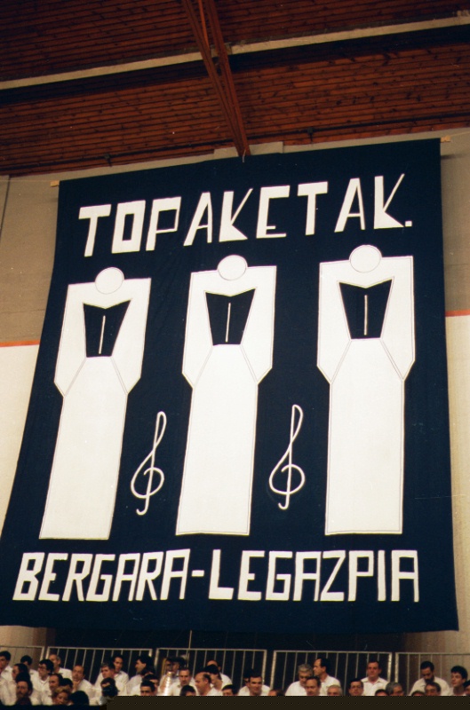 | Cartel de "5. Topaketak Bergara-Legazpia" en el frontón |