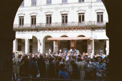 | Grupo de personas en la plaza San Martín | 21-V-83 [ms. v.] |