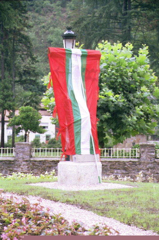 Inauguración del reloj de sol de José Ángel Ugalde en la plaza Oxirondo: reloj cubierto con tela |