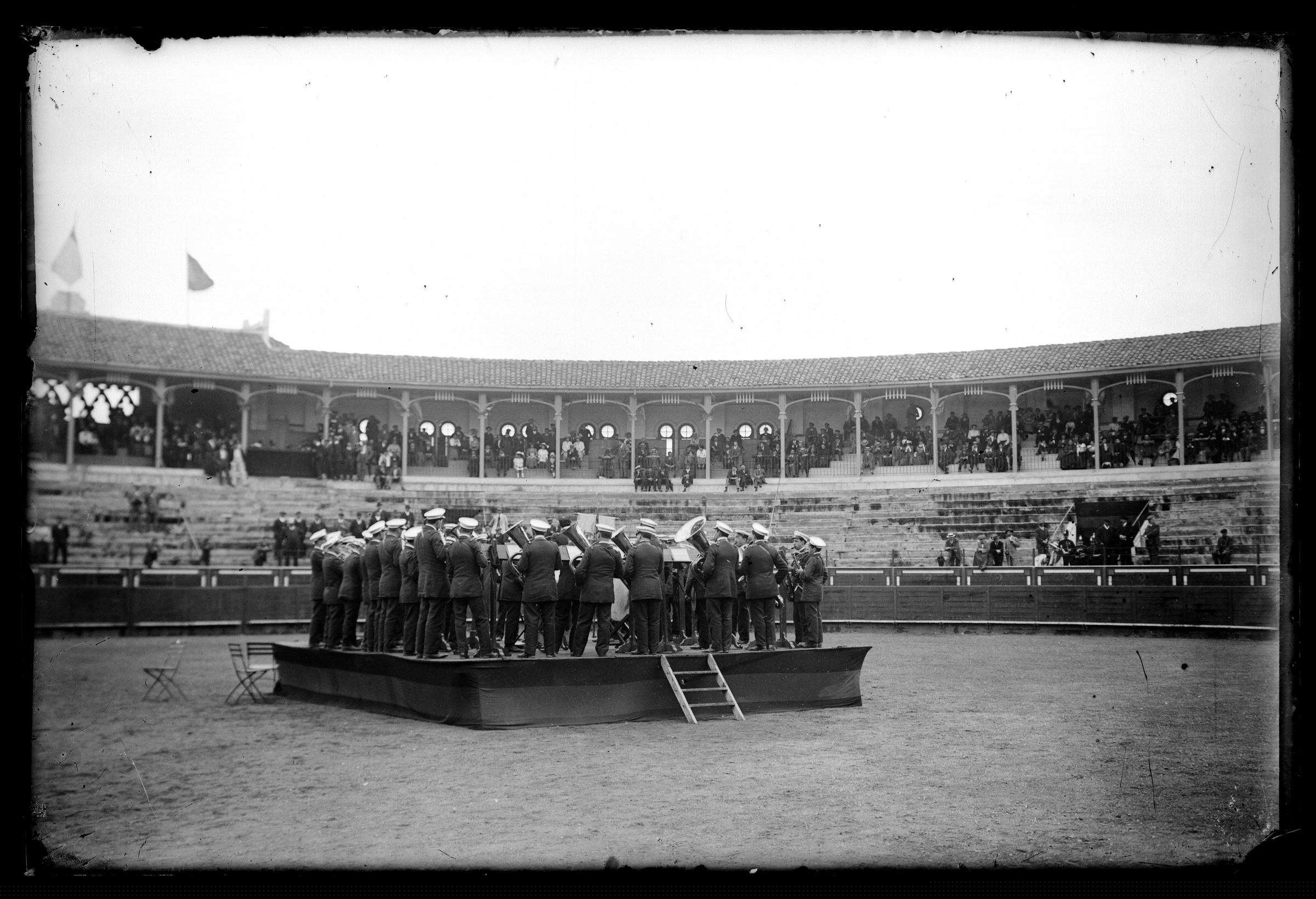 Banda Municipal actuando en la plaza de Toros de Irun | [Recuerdo del Concurso de bandas de Música de Irún. Foto del concurso en la plaza de toros, año 1913] |