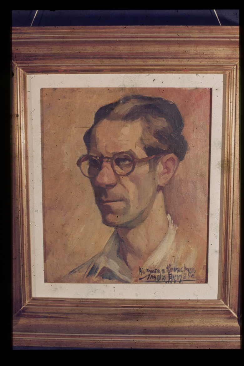 | Cuadro: retrato de hombre [firma: al amigo Erenchun, Simoón Arrieta, 1944] |