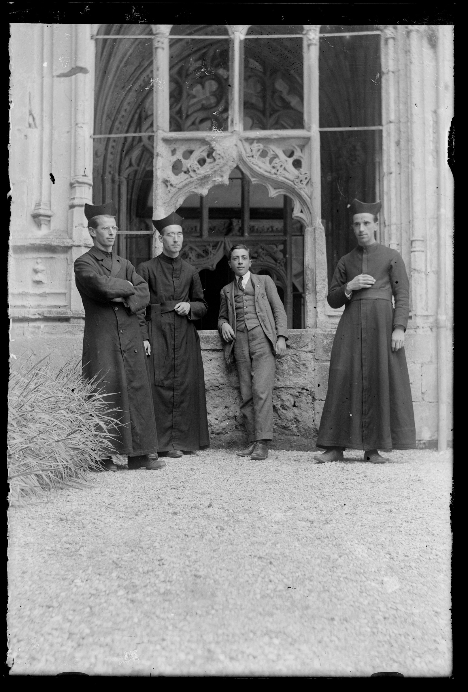 | Retrato de cuatro hombres, tres curas en un claustro |