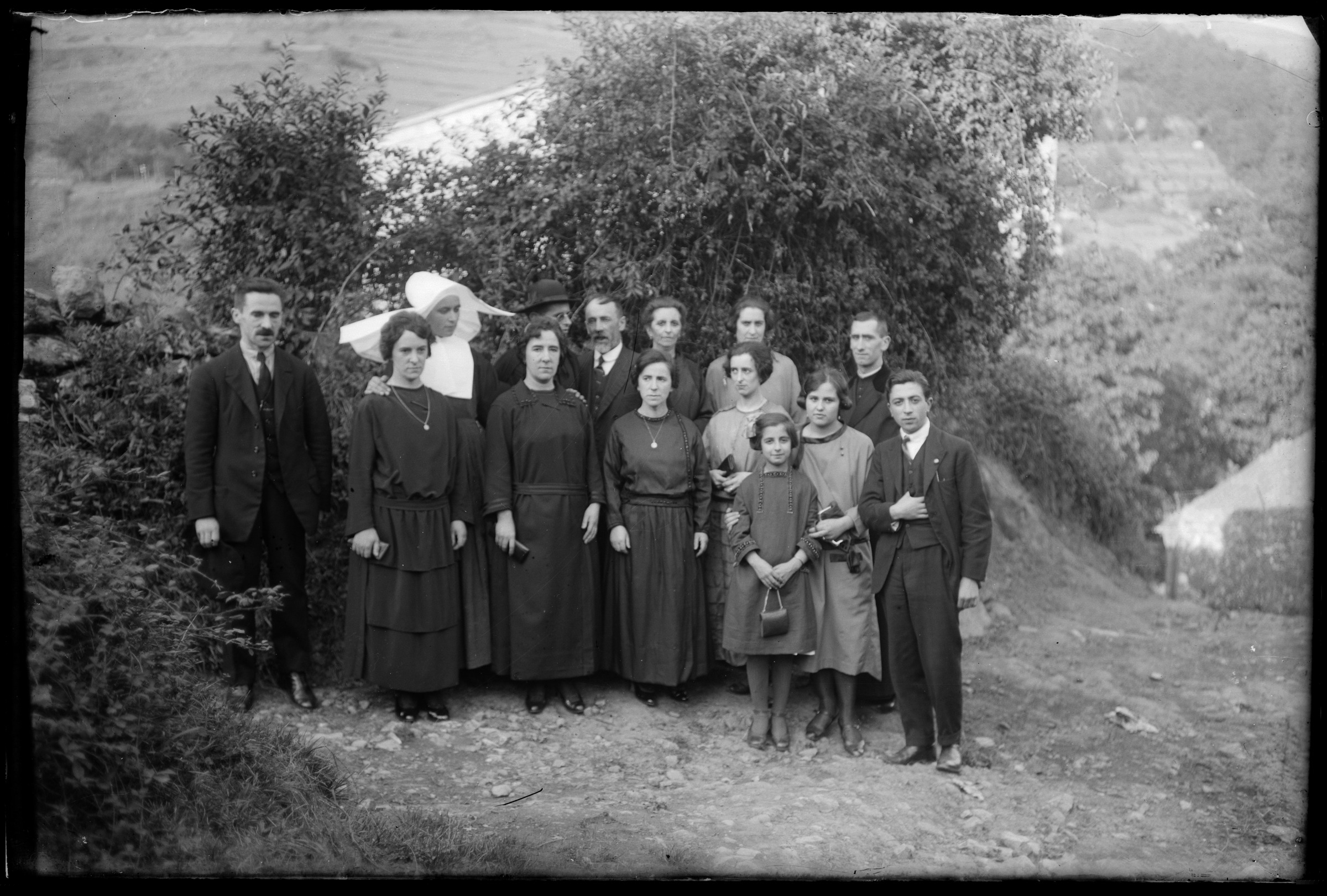 | Retrato de grupo: cuatro hombres, y nueve mujeres ( delante una niña y atras a la izquierda una monja |
