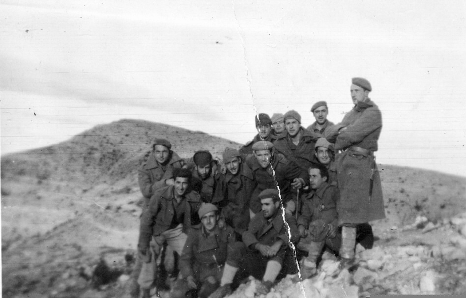 | Grupo de hombres vestidos de militar | Vergara a 27-VII-46 Día triste pues me tuve que ir [ms.v.] |