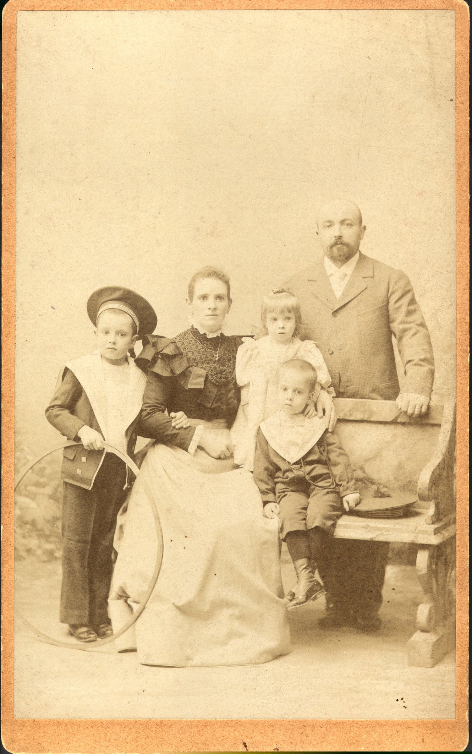 | Retrato familiar. | Consideramos que el presente será recibido con júbilo por nuestros queridos padres y por tal razón, con gusto les dedicamos este pequeño recuerdo. México Octubre 3 de 1897, [sinadurak:] E.Larrea Manuela O. de Larrea [ms.v.]; Valleto Hª, 1ª de San Francisco 14, México [imp.v.] |