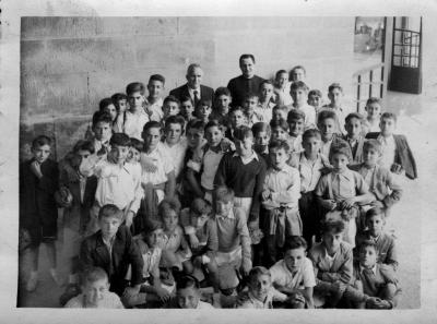 | Grupo de niños de la escuela con el maestro y cura el monte igueldo |